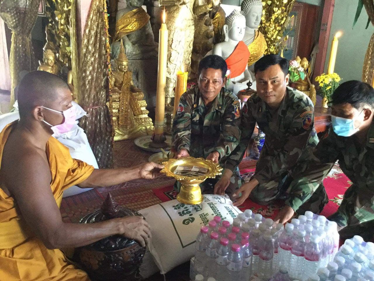 មេបញ្ជាការកងពលតូចអន្តរាគមន៍លេខ៨ នំាយកទេយ្យវត្ថុជាគ្រឿងឧបភោគ បរិភោគ ប្រគេនដល់ព្រះគ្រូចៅអធិការវត្តកែវសិក្ខាគិរីស្វារៈ
