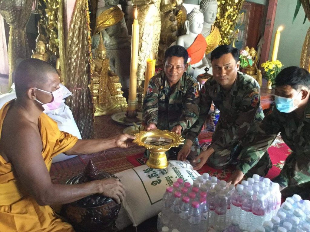 អំណោយដែលប្រគេនដល់ព្រះសង្ឃ រួមមាន៖ អង្ករចំនួន១២បេ, មី ចំនួន៤កេះ, ទឹកផ្លែឈើ ចំនួន១កេះ, កាហ្វេ ចំនួន៤ថង់ធំ, តែ ចំនួន១កញ្ចប់ធំ, ទឹកសុទ្ធ ចំនួន២០យួរ និងបច្ច័យ ចំនួន៩០ម៉ឺនរៀល៕សួនលីណា