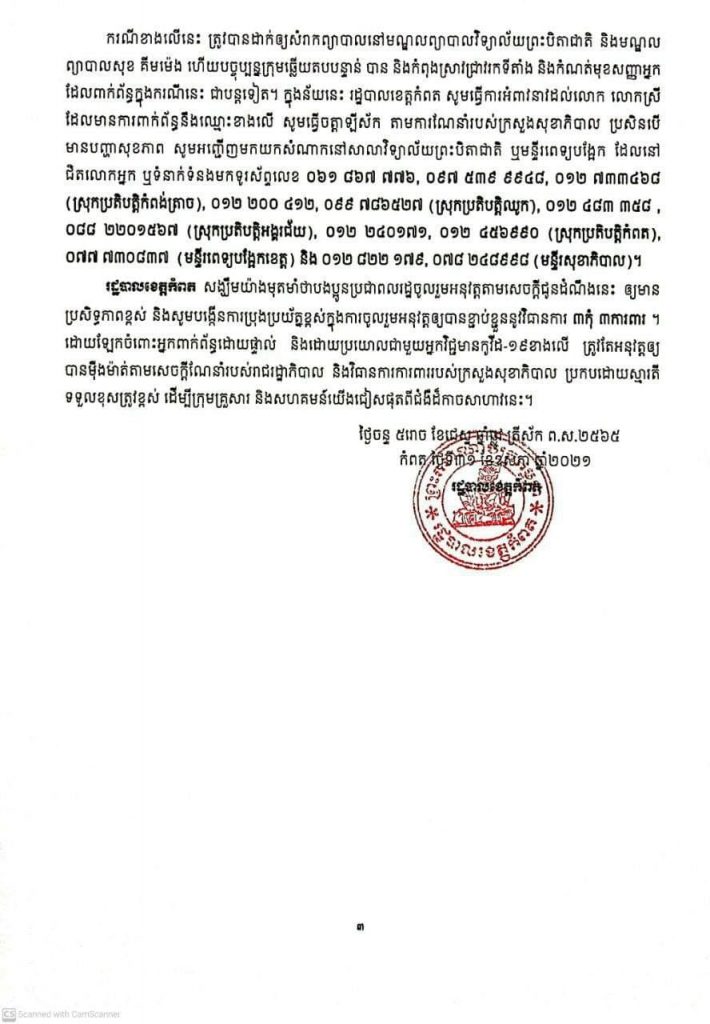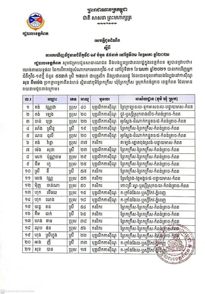 អត្តសញ្ញាណអ្នកវិជ្ជមានកូវីដ១៩ចំនួន ៥៥នាក់ នៅខេត្តកំពតOne-Minuteអត្ថបទដោយ៖AMS OneMinute ៣១ ឧសភា ២០២១ AMS OneMinuteអត្ថបទមុនអត្ថបទបន្ទាប់