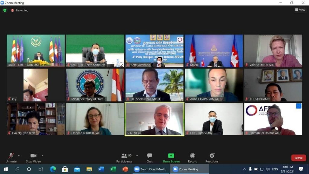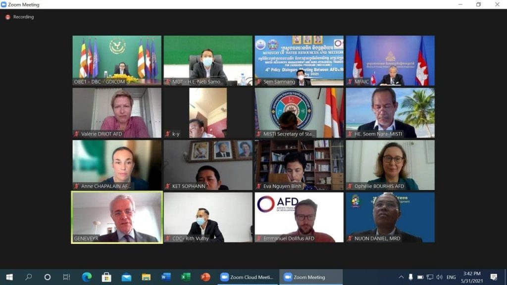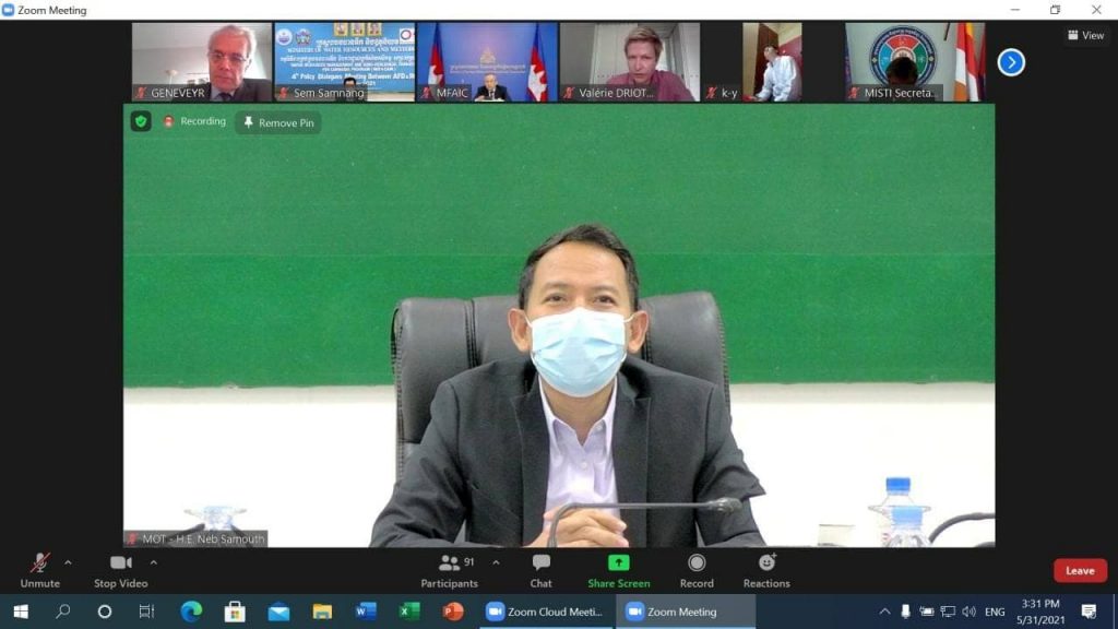 ថ្ងៃទី៣១ ខែឧសភា ឆ្នាំ២០២១ ថ្នាក់ដឹកនាំក្រសួងទេសចរណ៍ ដឹកនាំដោយ ឯ.ឧ ជា បូរ៉ា រដ្ឋលេខាក្រសួងទេសចរណ៍ និងមន្រ្តីជំនាញគម្រោងមួយចំនួនទៀត បានចូលរួមកិច្ចពិគ្រោះយោបល់កម្រិតគោលនយោបាយលើកទី៤ (4th Policy Dialogue) រវាងរដ្ឋាភិបាលកម្ពុជា និងទីភ្នាក់ងារបារាំងសម្រាប់ការអភិវឌ្ឍ (AFD) តាមប្រព័ន្ធវីឌីអូខុនហ្វឺរ៉េន (Video Conference, Zoom) ក្រោមអធិបតីភាព ឯ.ឧ វង្សី វិស្សុត រដ្ឋមន្រ្តីប្រតិភូអមនាយករដ្ឋមន្រ្តី និងជារដ្ឋលេខាធិការក្រសួងសេដ្ឋកិច្ច លោកជំទាវ Eva NGUYEN Binh ឯកអគ្គរដ្ឋទូត នៃសាធារណរដ្ឋបារាំងប្រចាំកម្ពុជា និង Mr. Remi Genevey, AFD Director Eastern Europe, Middle East and Asia. សូមរំលឹកថា ក្រសួងទេសចរណ៍ បាននិងកំពុងអនុវត្តគម្រោងសាងសង់សាលាជាតិវិជ្ជាជីវៈទេសចរណ៍ក្រោមហិរញ្ញប្បទានឥណទាន និងគម្រោងពង្រឹងសមត្ថភាពពាណិជ្ជកម្មក្នុងវិស័យទេសចរណ៍ក្រោមហិរញ្ញប្បទានឥតសំណងពីទីភ្នាក់ងារបារាំងសម្រាប់ការអភិវឌ្ឍ (AFD)៕