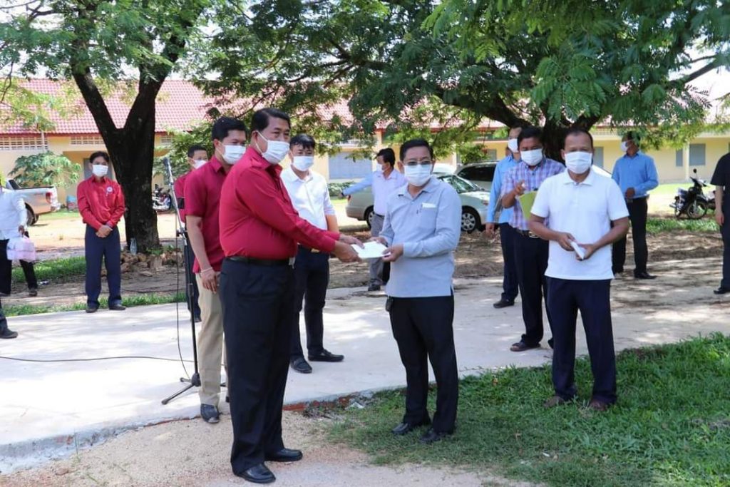 ក្នុងឱកាសនោះឯកឧត្តម ជាវ តាយ អភិបាលខេត្តក៏បាន ជូនថវិកាចំនួន៥លាន ២សែនរៀលសម្រាប់អ្នកជំងឺកូវីដ១៩និងអ្នកធ្វើចត្តាឡីស័កក្នុងម្នាក់ៗ៥ម៉ឺនរៀល និងថវិកា ១លានរៀលទៀតសម្រាប់ក្រុមគ្រូពេទ្យ១០នាក់ក្នុងម្នាក់ៗ ១០ ម៉ឺនរៀលរួមនឹងថវិកាមួយចំនួនទៀតដល់កងកម្លាំងទាំង៣យាមប្រចាំការផងដែរ ហើយឯកឧត្តមអភិបាលខេត្តនឹងបន្តផ្ដល់ទឹកអាកុល ម៉ាស់ និងទឹកសុទ្ធសម្រាប់ជួយផ្គត់ផ្គង់ដល់អ្នកជំងឺនិងអ្នកកំពុងធ្វើចត្តាឡីស័កនៅទីនោះផងដែរ៕