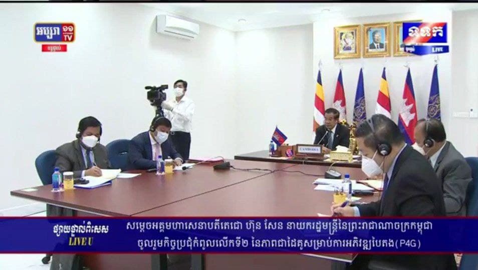 ភ្នំពេញ៖ សម្តេចអគ្គមហាសេនាបតីតេជោ ហ៊ុន សែន នាយករដ្ឋមន្ត្រី នៃព្រះរាជាណាចក្រកម្ពុជា បានអញ្ជើញចូលរួម និងបានផ្តល់ទស្សនទានមួយចំនួន ទៅកាន់កិច្ចប្រជុំកំពូលលើកទី២ នៃភាពជាដៃគូសម្រាប់ការអភិវឌ្ឍបៃតង និងគោលដៅសកលឆ្នាំ២០៣០ ហៅកាត់ថា P4G ដើម្បីដោះស្រាយវិបត្តិបម្រែបម្រួលអាកាសធាតុ និងលើកកម្ពស់ភាពបៃតងពិភពលោកឡើងវិញ (P4G) ដែលរៀបចំឡើងដោយប្រទេសកូរ៉េខាងត្បូង តាមប្រព័ន្ធវិដេអូ នៅយប់ថ្ងៃចន្ទ ទី៣១ ខែឧសភា ឆ្នាំ២០២១នេះ ក្រោមប្រធានបទ «ការលើកកម្ពស់ការស្តារបៃតងឡើងវិញប្រកបដោយបរិយាប័ន្នពីជំងឺឆ្លងកូវីដ១៩»។ កិច្ចប្រជុំនេះ មានការអញ្ជើញចូលរួមដោយប្រធានាធិបតីសាធារណរដ្ឋកូរ៉េ ឯកឧត្តម មូន ចេអ៉ីន ព្រមទាំងប្រមុខរដ្ឋប្រទេសដទៃទៀតប្រមាណ ៦០រូប និងថ្នាក់ដឹកនាំ នៃអង្គការអន្តរជាតិនានាជាច្រើនផ្សេងទៀត ។