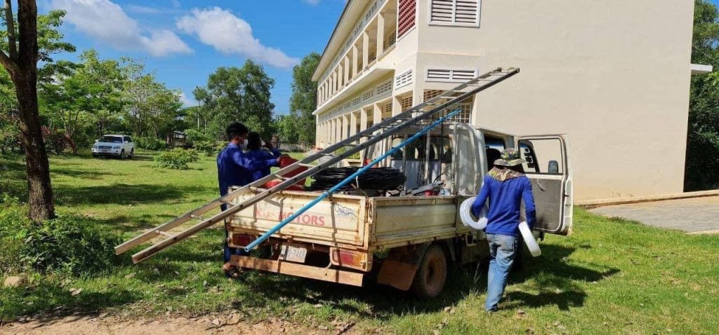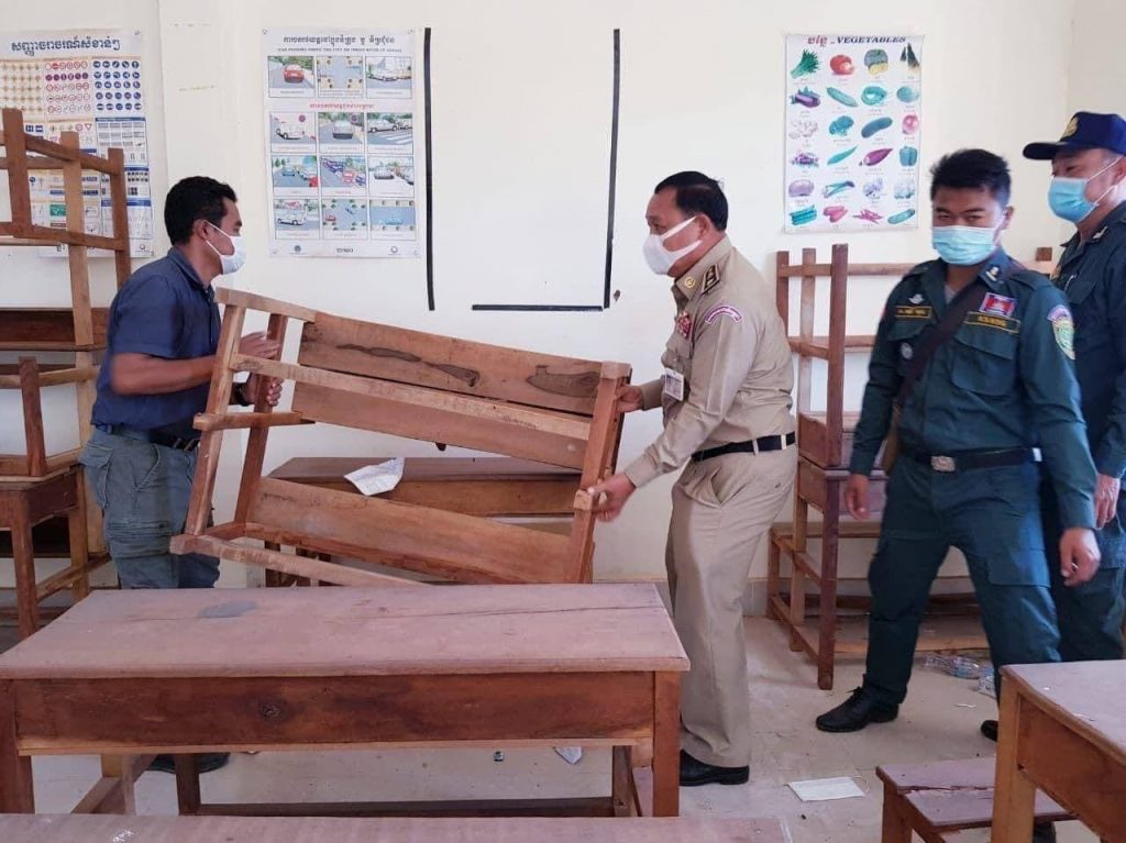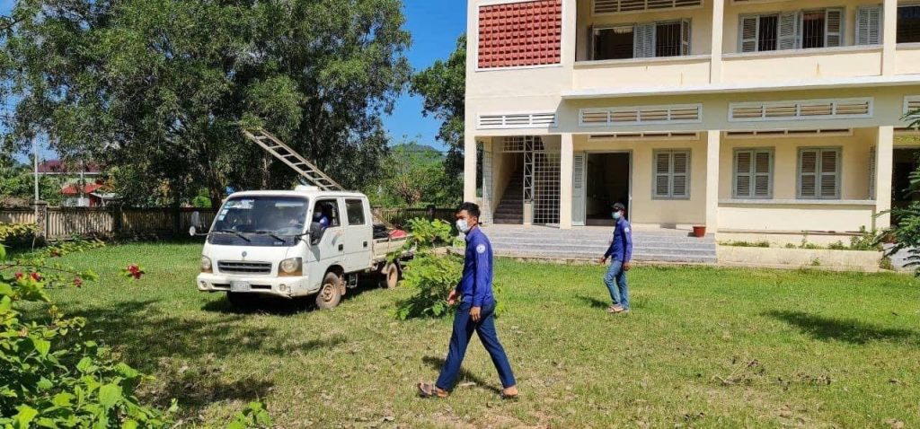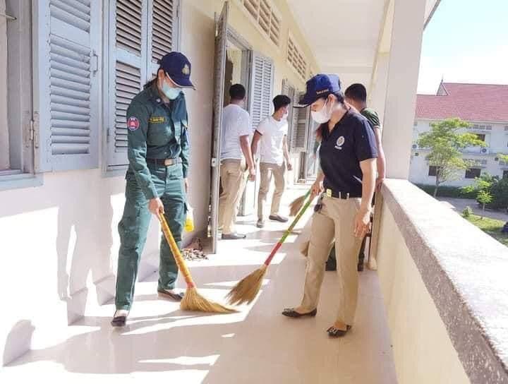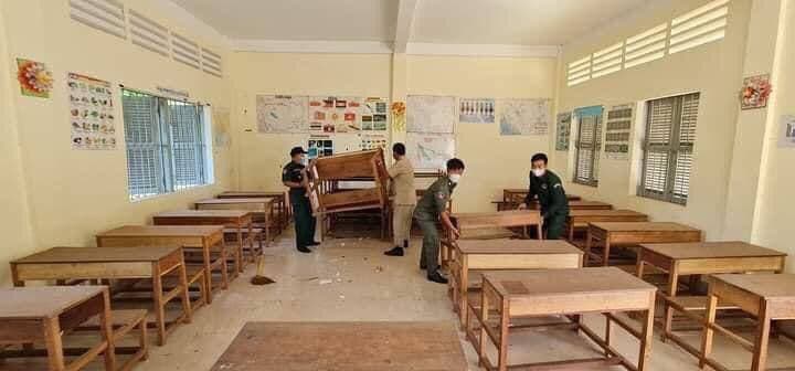 អគារមួយខ្នងនៅវិទ្យាល័យ ហ៊ុន សែន ចំការដូង ត្រូវបានក្រុមការងារចម្រុះរៀបចំសម្អាតអនាម័យ តបណ្តាញអគ្គិសនី និងទឹកស្អាតដើម្បីបង្កើតជាមណ្ឌលចត្តាឡីស័កបន្ថែមទៀត