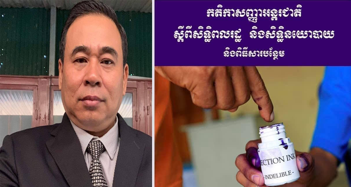 លោកបានបន្តថា សិទ្ធិនយោបាយ គឺជាផ្នែកមួយនៃកតិកាសញ្ញាអន្តរជាតិ ស្តីពីសិទ្ធិពលរដ្ឋ និងសិទ្ធិនយោបាយ ឆ្នាំ១៩៦៦ (International Covenant on Civil and Political Rights, 1966) ដែលឧត្តមក្រុមប្រឹក្សាជាតិនៃកម្ពុជា (Supreme National Council of Cambodia)បានផ្តល់សច្ចាប័ននៅឆ្នាំ១៩៩២ ដែលបានក្លាយជាច្បាប់មួយបញ្ចូលទៅក្នុងរដ្ឋធម្មនុញ្ញកម្ពុជា ឆ្នាំ១៩៩៣។ កតិកាសញ្ញាអន្តរជាតិនេះចែងគ្របដណ្តប់សិទ្ធិនិងសេរីភាពជាច្រើន ដែលក្នុងនោះក៏មានសិទ្ធិនយោបាយរួមបញ្ចូលទាំង សិទ្ធិបោះឆ្នោត (សិទ្ធិពលរដ្ឋ ឬសិទ្ធិស៊ីវិល) សិទ្ធិជ្រើសរើសចូលរួមក្នុងគណបក្ស សិទ្ធិធ្វើសកម្មភាពនយោបាយគាំទ្រ ឬប្រឆាំងគណបក្សមួយ និងសិទ្ធិឈរឈ្មោះឱ្យគេបោះឆ្នោតន(ជាបេក្ខជន)។ សំខាន់ជាងនេះកតិកាសញ្ញានេះចែងធានាដល់សិទ្ធិ និងសេរីភាពបញ្ចេញមតិ យោបល់ សេរីភាពសារព័ត៌មាន ការជួបប្រជុំសាធារណៈ កូដកម្ម បាតុកម្ម ការធ្វើញត្តិ ការដាក់បណ្តឹងប្រឆាំងអាជ្ញាធររដ្ឋដើម្បីទាមទារសំណងផ្សេងៗ ចូលរួមអង្គការមហាជន សមាគមអង្គការមិនមែនរដ្ឋាភិបាល សហជីព ជាដើម។