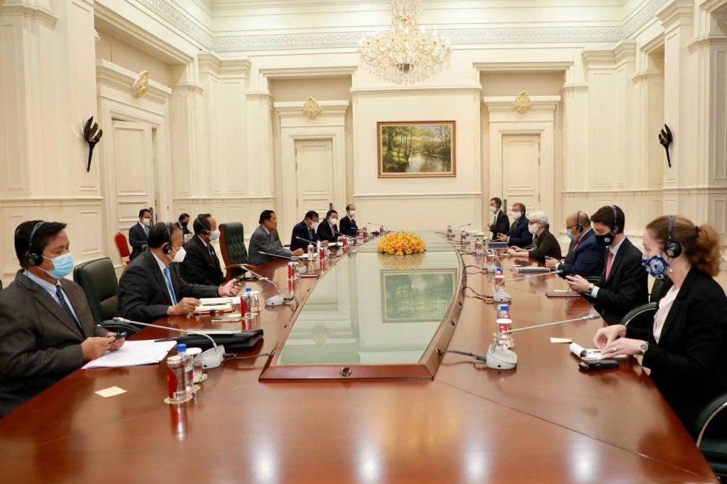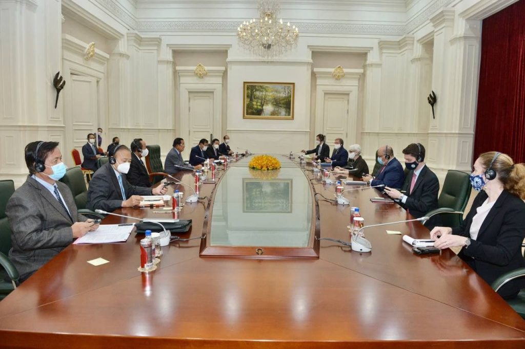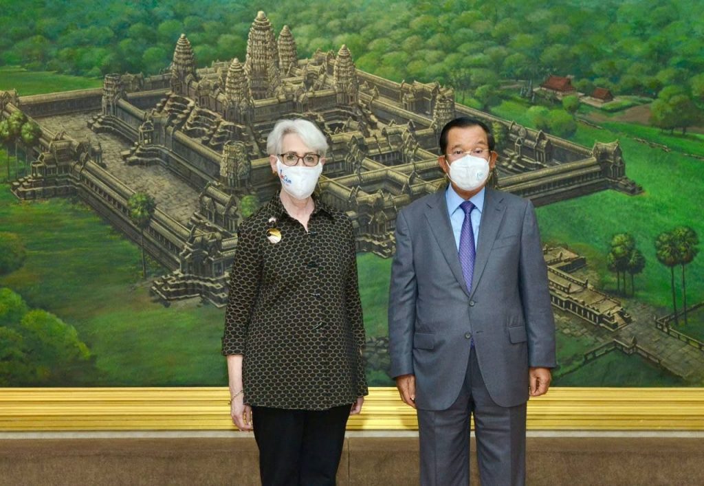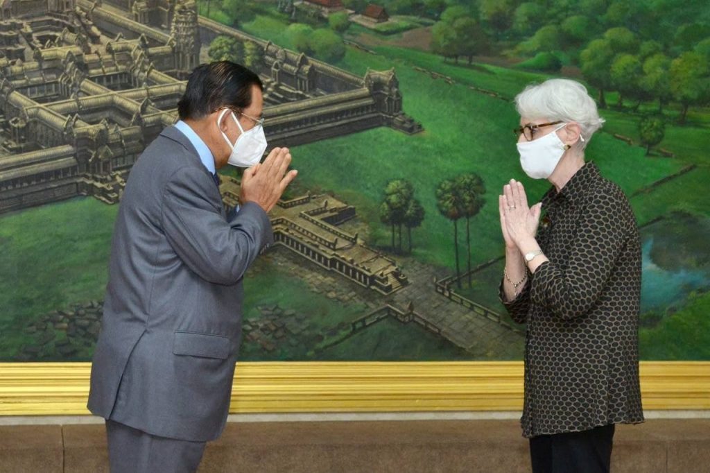 ភ្នំពេញ៖ ក្នុងជំនួបសំដែងការគួរសម និងពិភាក្សាការងារជាមួយសម្តេចអគ្គមហាសេនាបតីតេជោ ហ៊ុន សែន នាយករដ្ឋ មន្ត្រី នៃព្រះរាជាណាចក្រកម្ពុជា នៅវិមានសន្តិភាព ទីស្តីការនាយករដ្ឋមន្ត្រី នារសៀលថ្ងៃទី០១ ខែមិថុនា ឆ្នាំ២០២១ លោកជំទាវ Wendy R. Sherman អនុរដ្ឋមន្ត្រីក្រសួងការបរទេសសហរដ្ឋអាមេរិក បានគោរពជម្រាបជូនសម្តេចតេជោ ចំពោះឱកាសនៃសហប្រតិបត្តិការប្រទេសទាំង២ រួមមានទាំងការលុបបំបាត់បំណុលរបស់កម្ពុជា, កិច្ចសហប្រតិបត្តិការ របស់កម្ពុជាលើប្រេង និងឧស្ម័ន និងការវិនិយោគរបស់សហរដ្ឋអាមេរិក លើបញ្ហាទឹក បញ្ហាហេដ្ឋារចនាសម្ព័ន្ធ បញ្ហាថាម ពលបៃតង និងបញ្ហាដទៃដទៃទៀតជាច្រើន ។