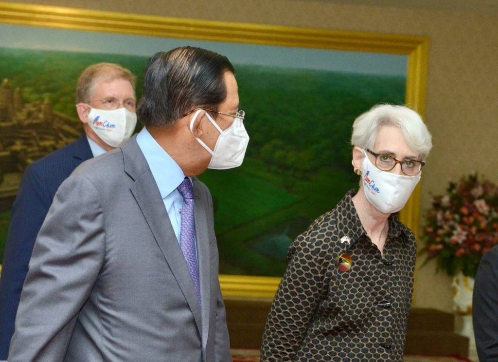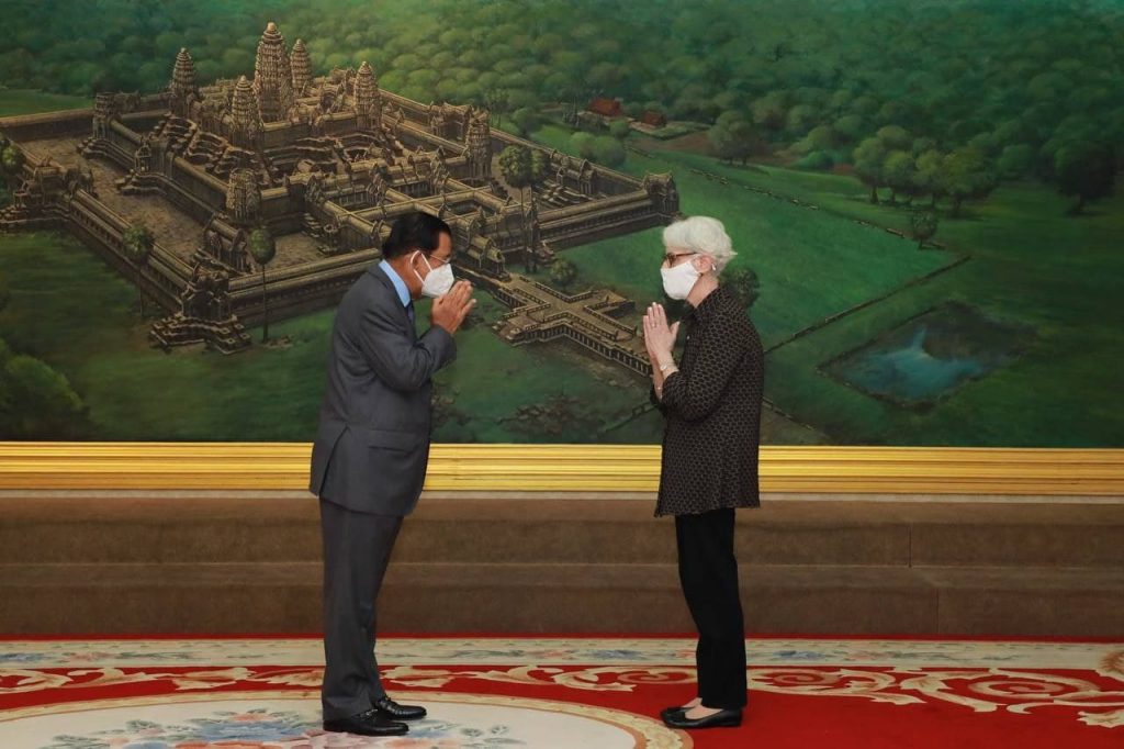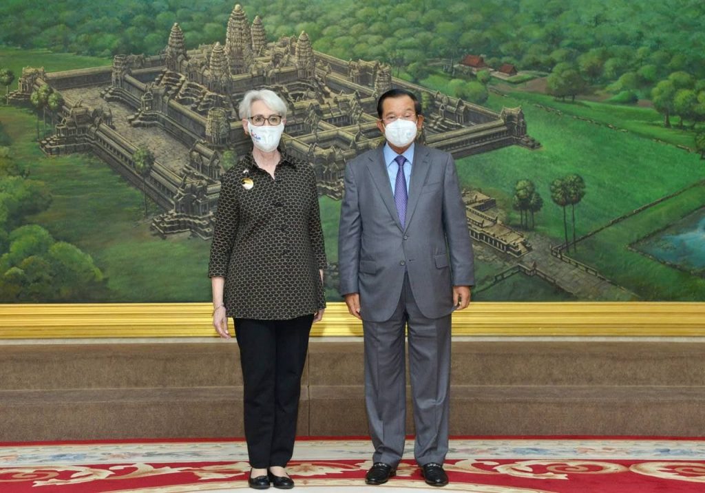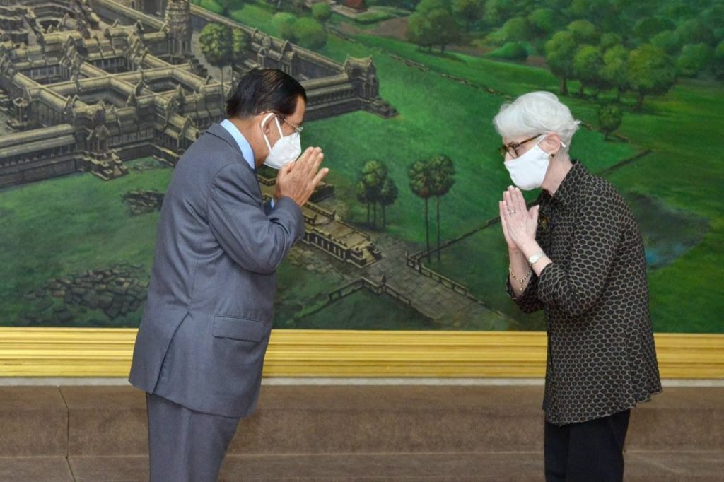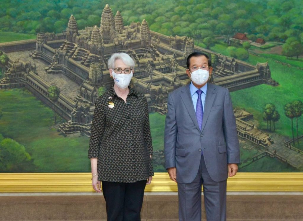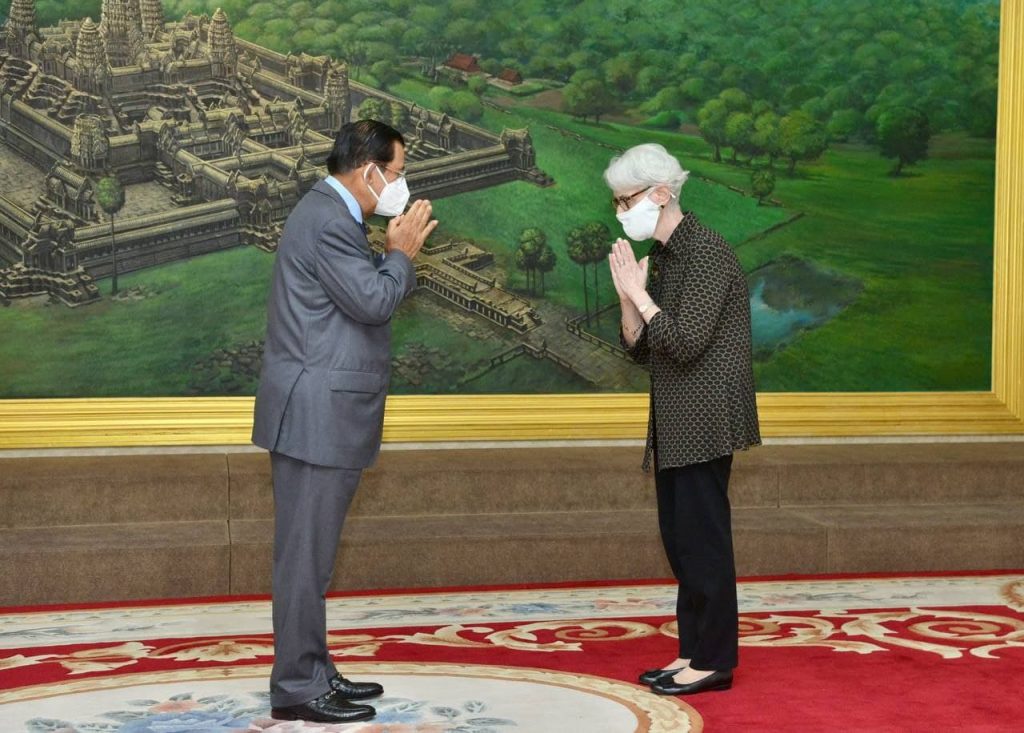 ភ្នំពេញ៖ ក្នុងជំនួបសំដែងការគួរសម និងពិភាក្សាការងារជាមួយសម្តេចអគ្គមហាសេនាបតីតេជោ ហ៊ុន សែន នាយករដ្ឋ មន្ត្រី នៃព្រះរាជាណាចក្រកម្ពុជា នៅវិមានសន្តិភាព ទីស្តីការនាយករដ្ឋមន្ត្រី នារសៀលថ្ងៃទី០១ ខែមិថុនា ឆ្នាំ២០២១ លោកជំទាវ Wendy R. Sherman អនុរដ្ឋមន្ត្រីក្រសួងការបរទេសសហរដ្ឋអាមេរិក បានគោរពជម្រាបជូនសម្តេចតេជោ ចំពោះឱកាសនៃសហប្រតិបត្តិការប្រទេសទាំង២ រួមមានទាំងការលុបបំបាត់បំណុលរបស់កម្ពុជា, កិច្ចសហប្រតិបត្តិការ របស់កម្ពុជាលើប្រេង និងឧស្ម័ន និងការវិនិយោគរបស់សហរដ្ឋអាមេរិក លើបញ្ហាទឹក បញ្ហាហេដ្ឋារចនាសម្ព័ន្ធ បញ្ហាថាម ពលបៃតង និងបញ្ហាដទៃដទៃទៀតជាច្រើន ។