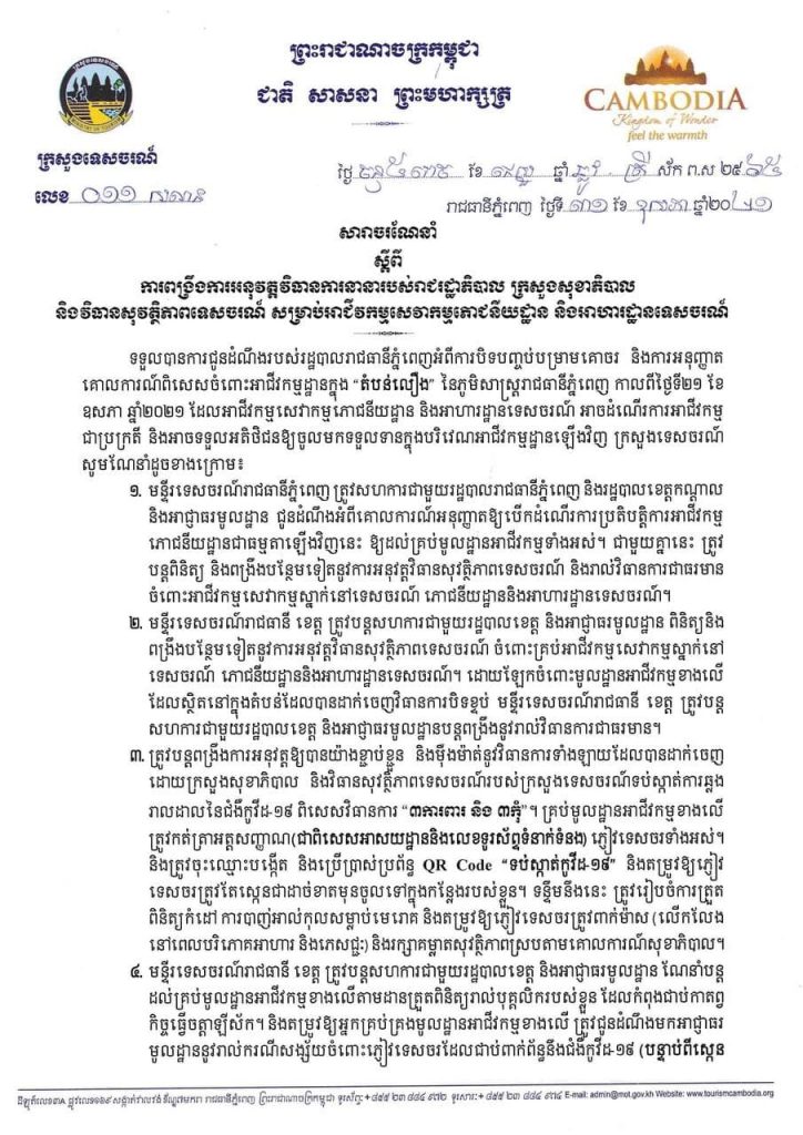 ខាងក្រោមនេះជាសារាចរណែនាំរបស់ក្រសួងទេសចរណ៍៖