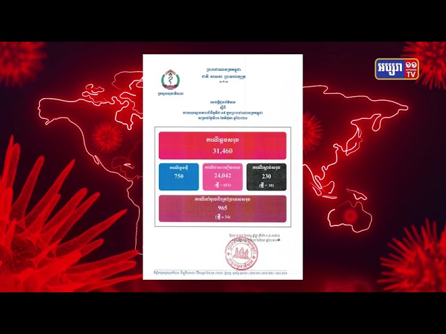 កម្ពុជាគិតត្រឹមថ្ងៃទី២ខែមិថុនាឆ្នាំ២០២១ ការឆ្លងសរុបទូទាំងប្រទេសចំនួន៣ម៉ឺន១ពាន់៤៦០នាក់, ការស្លាប់ សរុបមានចំនួន២៣០នាក់ក្រោយការស្លាប់ថ្មីចំនួន១០ក្នុងរយ:ពេល២៤កន្លងមកនេះ , ចំណែកការព្យាបាល ជាសះស្បើយសរុបមានចំនួន២ម៉ឺន៤ពាន់៤២នាក់ក្រោយការព្យាបាលជាសះស្បើយចុងក្រោយនេះចំនួន៦៥៣នាក់។