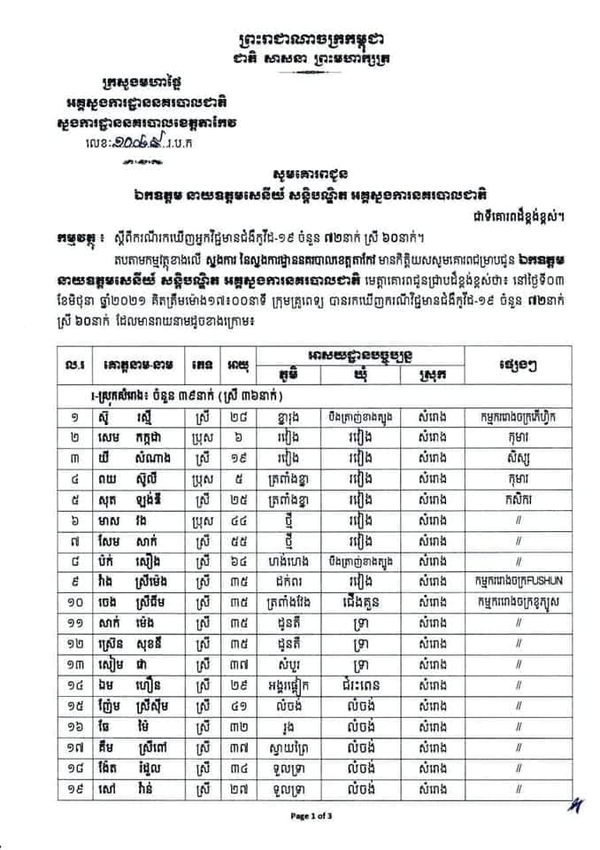 ខេត្តតាកែវ រកឃើញអ្នកវិជ្ជមានចំនួន ៧២នាក់ក្នុងរយៈពេល ២៤ម៉ោងចុងក្រោយ