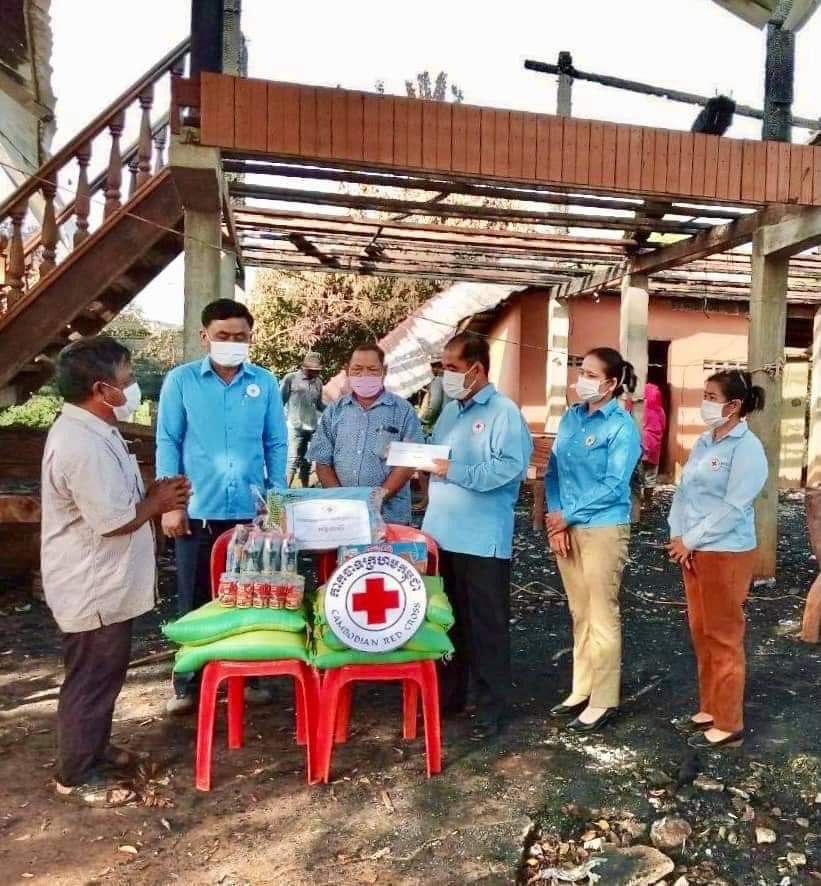 ប្រជាពលរដ្ឋមួយគ្រួសារ ដែលរងគ្រោះដោយសារអគ្គិភ័យឆេះផ្ទះ បានទទួលអំណោយ ពីអនុសាខា កាកបាទក្រហមកម្ពុជាក្រុងបានលុង