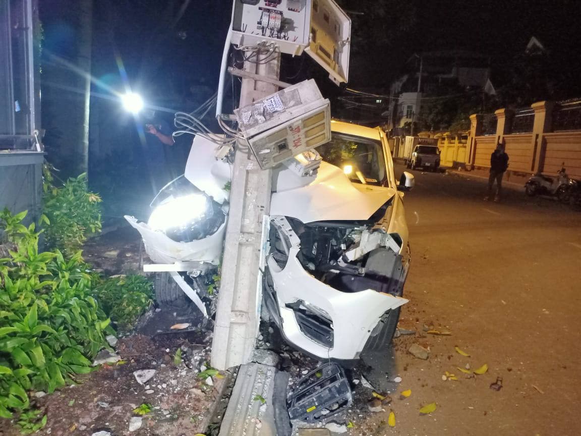 ភ្នំពេញ ៖ នារីស្រស់ស្អាតម្នាក់សង្ស័យស្រវឹងស្រា បានបើករថយន្តស៊េរីទំនើបមួយគ្រឿងបោះពួយយ៉ាងលឿនបានជ្រុលទៅបុកបង្គោលភ្លើងពេញទំហឹងបណ្ដាលឲ្យដាច់ចេញពីគ្នា និងធ្វេីឲ្យរថយន្តបង្កខូចខាតយ៉ាងដំណំ សំណាងល្អមិនមានអ្នករបួស។ ហេតុការណ៍ នេះបានកើតឡើងកាលវេលាម៉ោង១ និង០០នាទីយប់រំលងអធ្រាត្រឈានចូលថ្ងៃច័ន្ទ ទី៧ ខែ មិថុនា ឆ្នាំ២០២១ ស្ថិត តាម បណ្ដោយ ផ្លូវ ៦១៤ សង្កាត់ បឹងកក់ ទី២ ខណ្ឌទួលគោក ។