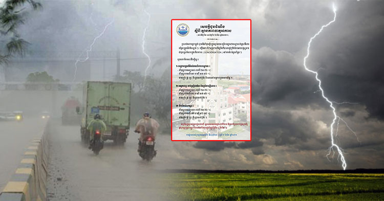 កម្ពុជាអាចនឹងមានភ្លៀង ផ្គរ ខ្យល់កន្ត្រាក់ខ្លាំង ចាប់ពីថ្ងៃទី៩ ដល់ថ្ងៃទី១៥ មិថុនា