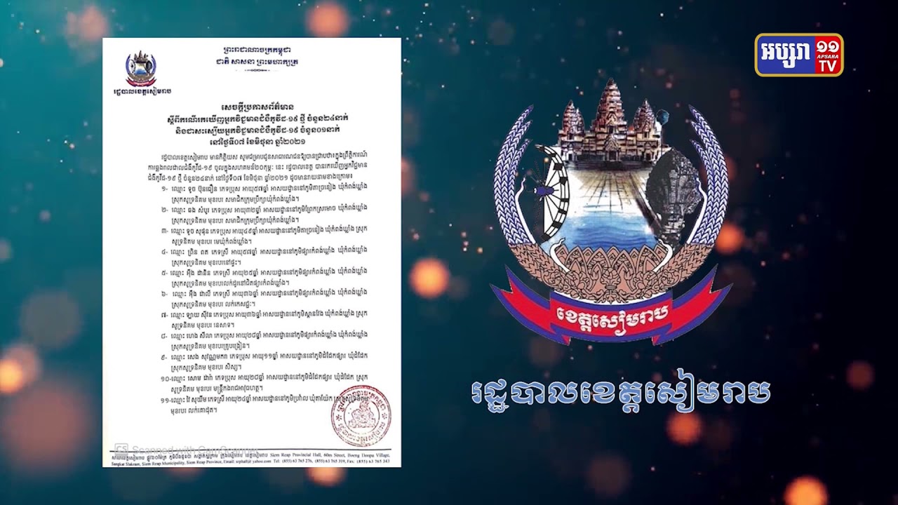 ខេត្តសៀមរាប មានអ្នកឆ្លងកូវីដ១៩ថ្មី២៤នាក់ (Video Inside)