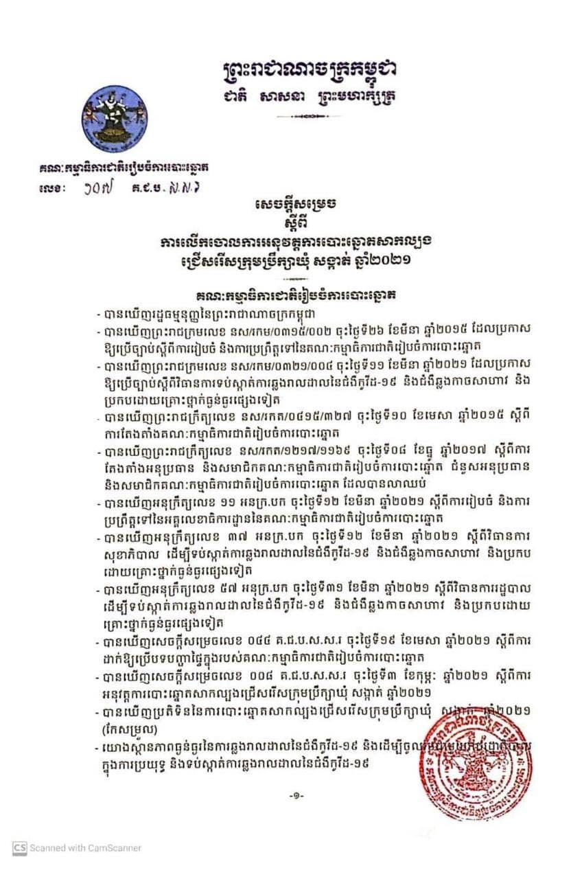 គ.ជ.ប សម្រេចលុបចោលការបោះឆ្នោតជ្រើសរើសក្រុមប្រឹក្សាឃុំ-សង្កាត់សាកល្បង នៅថ្ងៃទី២០ មិថុនាខាងមុខនេះក្រោយមានសំណើរពីសម្តេចតេជោ ហ៊ុន សែន