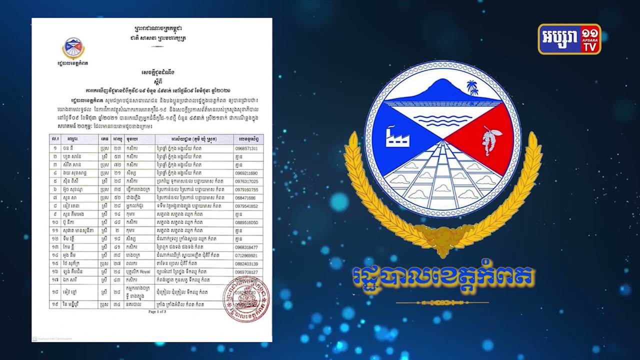 ខេត្តកំពត មានករណីឆ្លងថ្មី៤៩នាក់ (Video Inside)