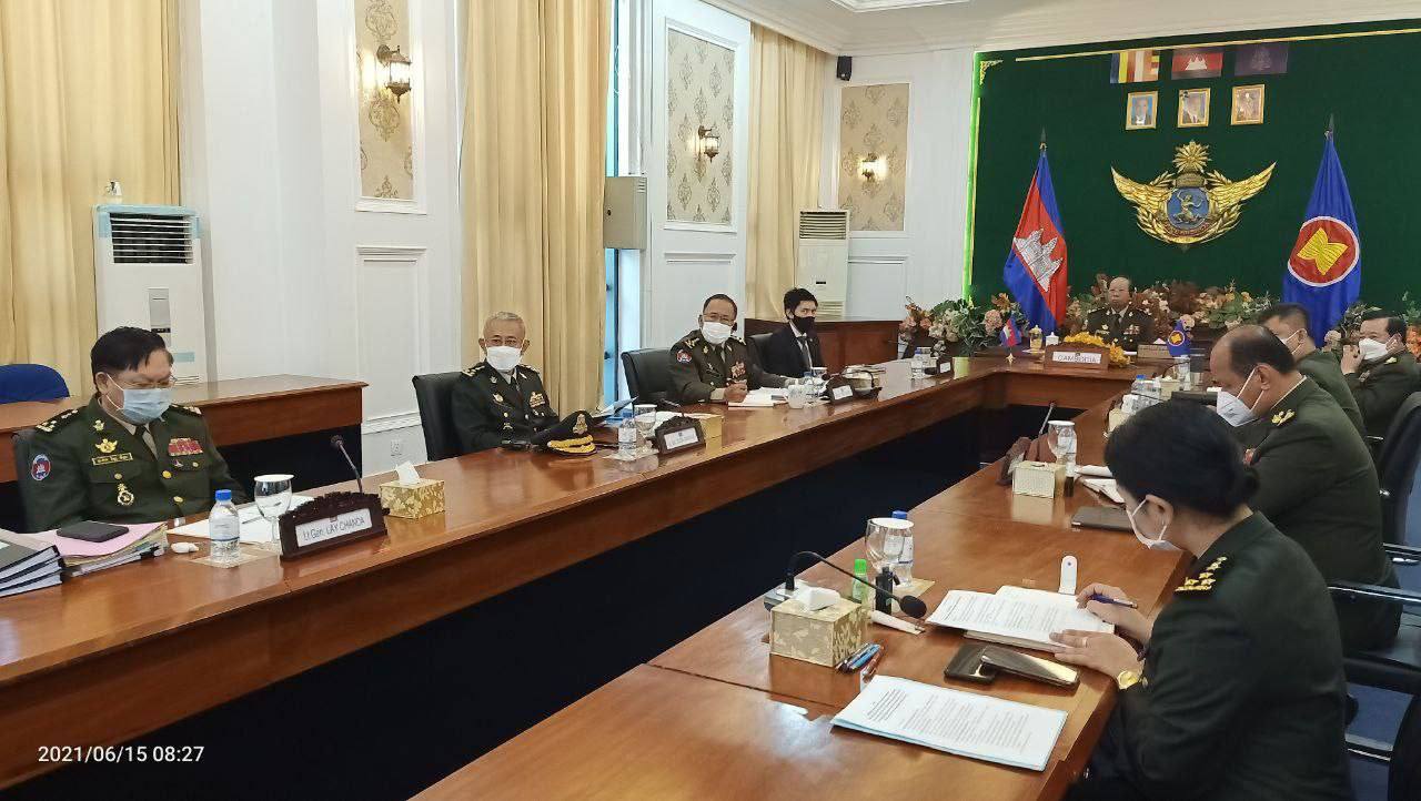 ភ្នំពេញ : សម្តេចពិជ័យសេនា ទៀ បាញ់ ឧបនាយករដ្ឋមន្ត្រី រដ្ឋមន្ត្រីក្រសួងការពារជាតិ នៃព្រះរាជាណាចក្រកម្ពុជា បានដឹកនាំប្រតិភូយោធាជាន់ខ្ពស់ក្រសួងការពារជាតិ ចូលរួមកិច្ចប្រជុំរដ្ឋមន្ត្រីការពារជាតិអាស៊ានលើកទី១៥ (15 ADMM) កិច្ចប្រជុំរដ្ឋមន្ត្រីការពារជាតិអាស៊ាន-បូក លើកទី៨ (8″ ADMM-Plus) និងកិច្ចប្រជុំក្រៅផ្លូវការរដ្ឋមន្ត្រីការពារជាតិអាស៊ាន-ចិន ពីថ្ងៃទី១៥ ដល់១៦ ខែមិថុនាឆ្នាំ២០២១តាមប្រព័ន្ធonline។