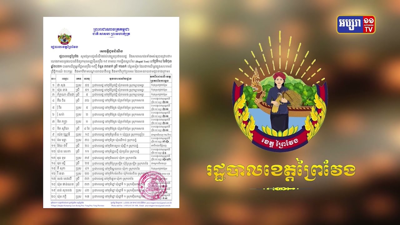 ខេត្តព្រៃវែង ឆ្លងថ្មី៣៣នាក់, ស្លាប់ម្នាក់ (Video Inside)