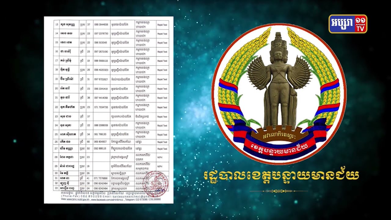 ខេត្តបន្ទាយមានជ័យ មានអ្នកឆ្លងថ្មី៤៥នាក់ (Video Inside)