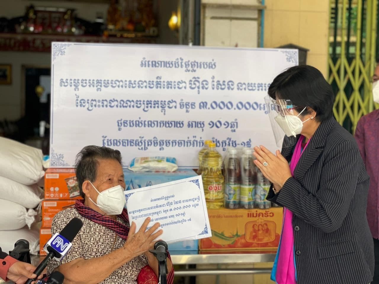 លោកយាយ អាយុ ១០១ឆ្នាំ ទទួលអំណោយ សម្តេចតេជោ ហ៊ុន សែន បន្ទាប់ពីទទួលការចាក់វ៉ាក់សាំង