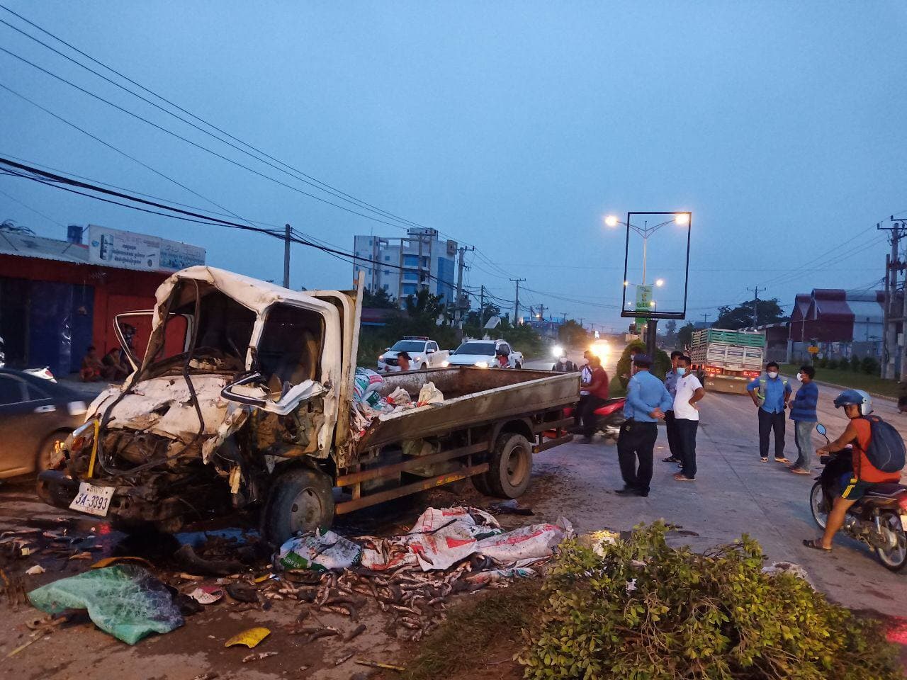 បេីតាមប្រភពពីកន្លែងកើតហេតុបានឲ្យដឹងថា ដំបូងឡើយគេឃើញរថយន្តកូរ៉េដឹកត្រីបើកតាមបណ្ដោយផ្លូវ ២១៧ទិសដៅពីត្បូងមកជើង យ៉ាងលឿន ខណៈមកដល់ចំណុចកើតហេតុខាងលើក៏បានបុកនឹងរថយន្តមួយគ្រឿងទៀតពីក្រោយមិនចាំម៉ាកបណ្ដាលឲ្យរួញកាប៊ីនគៀបជាប់តែកុង ភ្លាមៗត្រូវបានប្រជាពលរដ្ឋក៏ដូចជារថយន្តសាម៉ុយនាំគ្នាជួយគាស់យកតៃកុងទៅព្យាបាលផងដែរ ដោយរបួសបាក់ជើងទាំងសង្ខាង ព្រមទាំងធ្លាក់ត្រីរាយប៉ាយពេញផ្លូវ។ ចំណែករថយន្តដែលត្រូវបានបុកនឹងបានចាកចេញពីកន្លែងកើតហេតុបាត់ស្រមោល។
