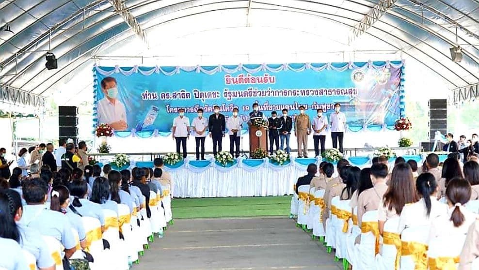 តាមរយៈ ការផ្តល់ជូន នូវការចាក់វ៉ាក់សាំងការពារជម្ងឺរាតត្បាតជាសកលពីជំងឺកូវីដ-19ខាងលើនេះគឺធ្វើឡើងក្រោមវត្តមានជាអធិបតីឯកឧត្តមបណ្ឌិត សាធី ពិទុតេឆា អនុរដ្ឋមន្ត្រី ក្រសួងសុខាភិបាលថៃ និង ជាប្រធានកម្មវិធីបើក និង ផ្តល់នូវការចាក់វ៉ាក់សាំងប្រភេទ “Astrazeneca” ដល់ប្រជាជនទាំង២(ថៃនិងកម្ពុជា) និងវត្តមាន របស់ លោកបណ្ឌិត រ៉ាត់ថាវីដ តាំងគៀត ផៈឆាក់រ៉ាក់ ជាប្រធានសមាគមលក់ដូរនិង ទេសចរណ៍ ព្រំប្រទល់ជាយដែន(ថៃ-កម្ពុជា)នៃខេត្តច័ន្ទបុរី ប្រទេសថៃនិងមន្ត្រីសំខាន់ៗ មួយចំនួនទៀត។