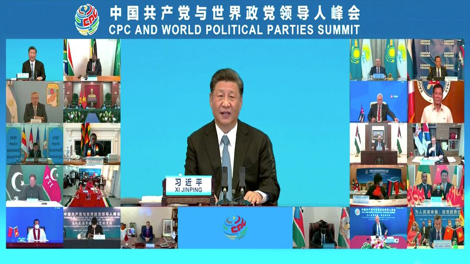 China’s Xi takes dig at U.S. in speech to political parties around world