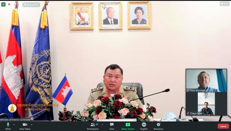 ទីស្ដីការក្រសួងមហាផ្ទៃ នារសៀលថ្ងៃទី០៨ ខែកក្កដា ឆ្នាំ២០២១ ឯកឧត្តម នាយឧត្តមសេនីយ៍ ប៉ោ ភក្តិ អគ្គលេខាធិការ នៃអគ្គលេខាធិការដ្ឋាន ក្រសួងមហាផ្ទៃ និងជាប្រធានក្រុមការងារទទួលបន្ទុកឧក្រិដ្ឋកម្មឆ្លងដែនក្នុងក្របខណ្ឌអាស៊ាន (SOMTC) បានអញ្ជើញចូលរួមក្នុងពិធីបើកវគ្គបណ្ដុះបណ្ដាល ស្ដីពីការបញ្ជ្រាបយេនឌ័រ លើការគ្រប់គ្រងអាវុធធុនតូច តាមរយៈប្រព័ន្ធវីដេអូសន្និសីទ។