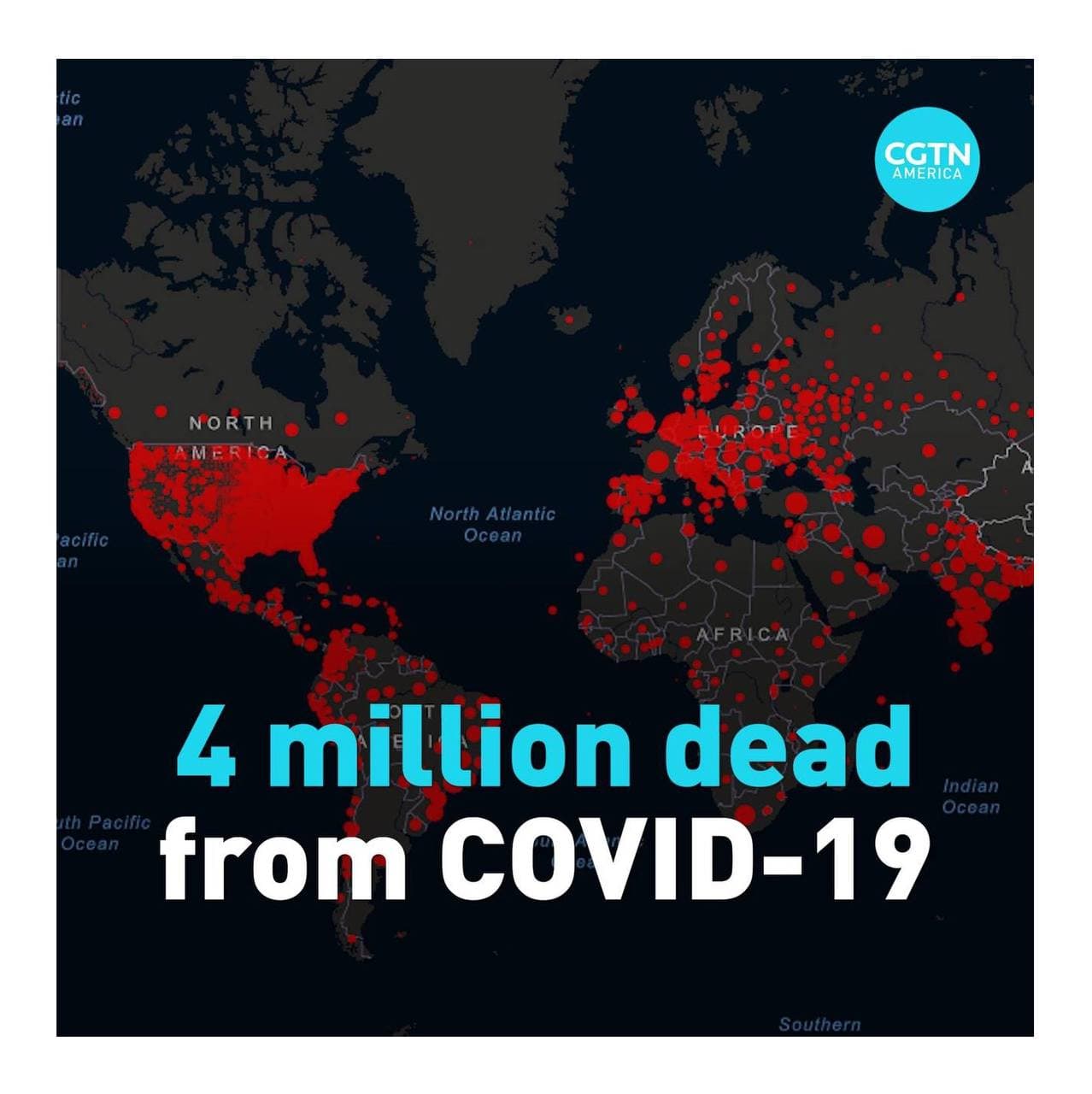 សកលវិទ្យាល័យ Johns Hopkins University បានឱ្យដឹងថា ប្រជាជនជាង ៤លាននាក់នៅជុំវិញពិភពលោកបានស្លាប់ ដោយសារជំងឺកូវីដ១៩ ក្នុងនោះប្រជាជនអាមេរិក ឥណ្ឌា ប្រេស៊ីល ប៉េរូ និងម៉ិកស៊ិកមានចំនួនជាងពាក់កណ្តាលនៃអ្នកស្លាប់ទាំងនោះ។