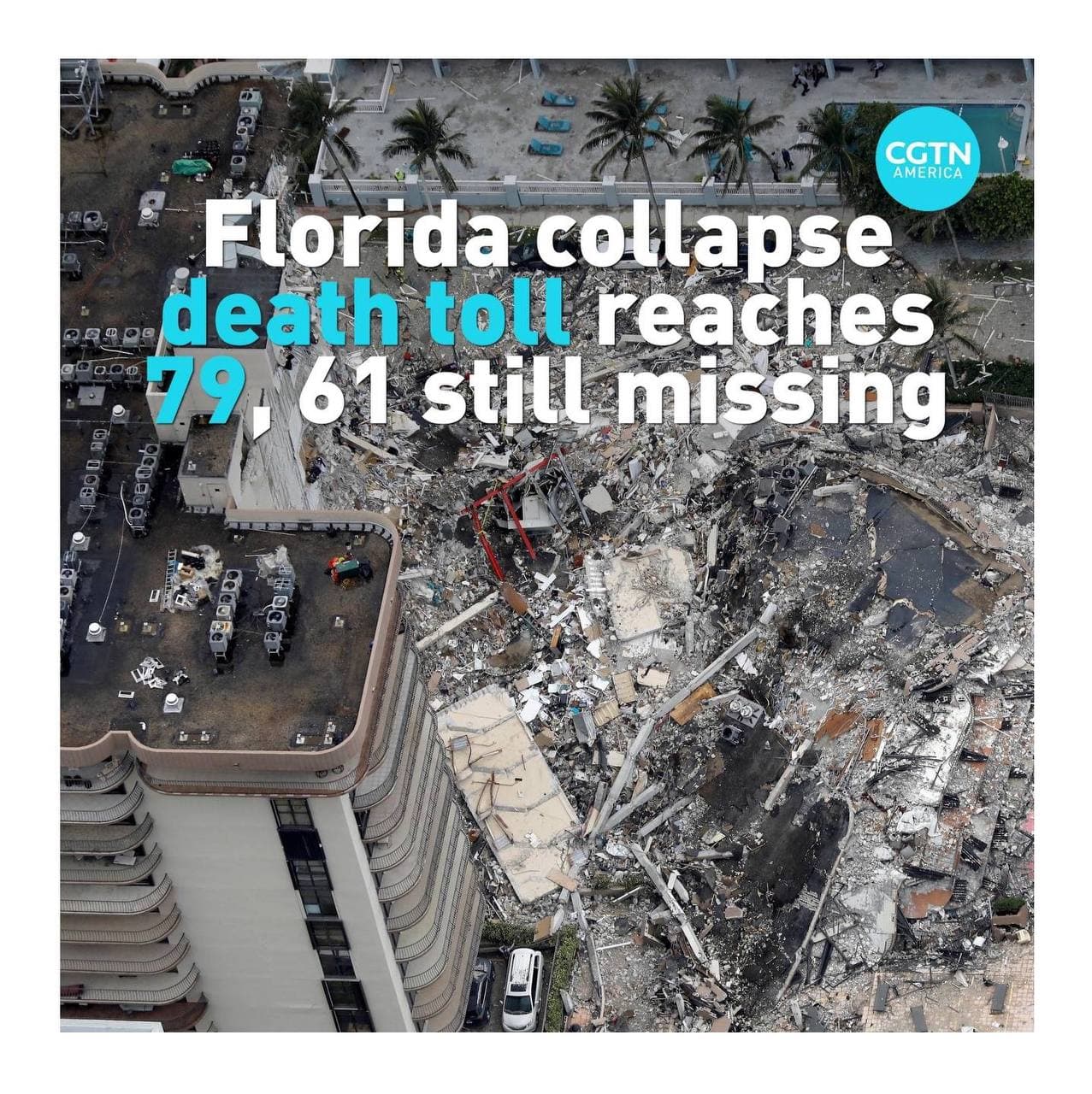ចំនួនអ្នកស្លាប់ កើនដល់ ៧៩នាក់ ក្នុងរយៈពេល ១៦ថ្ងៃក្រោយហេតុការណ៍ដួលរលំនៃខុនដូមួយនៅជាប់ឆ្នេរសមុទ្រក្នុងរដ្ឋ Florida 🇺🇸