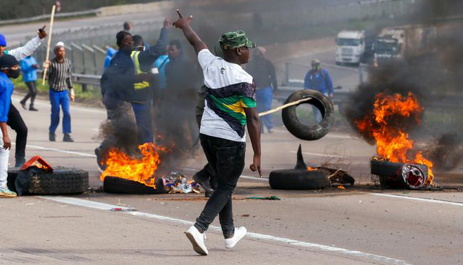 ភាពវឹកវរ និងអំពើអាណាធិបតេយ្យ ដោយក្រុមបាតុករប្រដាប់អាវុធ រីករាលដាលពាសពេញទីក្រុង Johannesburg កាលពីថ្ងៃ អាទិត្យ ខណៈអំពើហឹង្សាបានកើតឡើងជាបន្តបន្ទាប់ ក្រោយ អតីតប្រធានាធីបតីអាហ្វ្រិកខាងត្បូងលោក Jacob Zuma ជាប់ពន្ធនាគារ។