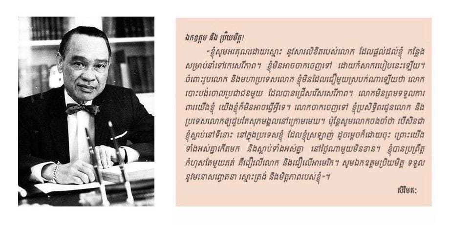 បើអ្នកបានអានសំបុត្រមួយច្បាប់របស់លោក សិរីមតៈ ផ្ញើជូនមិត្តអាមេរិកាំងរបស់គាត់ នោះអ្នកពិតជាយល់គ្រប់យ៉ាងពីសណ្តានពិតរបស់ប្រទេសជាសម្ពន្ធ័មិត្តមួយនេះជាក់ជាមិនខាន។