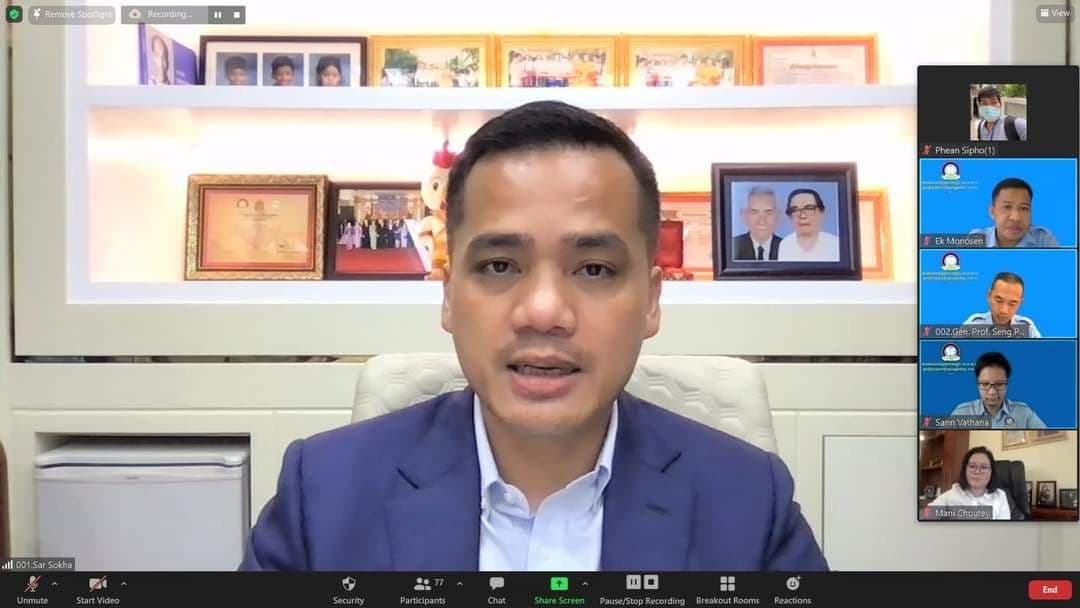 ភ្នំពេញ ៖ ក្នុងនាមជាប្រធានក្រុមប្រឹក្សាយុវជនគ្រឹះស្ថានឧត្តមសិក្សា នៃសហភាពសហព័ន្ធយុវជនកម្ពុជា ឯកឧត្តម ស សុខា រដ្ឋលេខាធិការក្រសួងអប់រំ យុវជន និងកីឡា និងជាអនុប្រធានសហភាពសហព័ន្ធយុវជនកម្ពុជាទទួលបន្ទុកខេត្តព្រៃវែង បាត់ដំបង និងបន្ទាយមានជ័យ បានអញ្ជើញជាតំណាងរបស់ឯកឧត្តម ហ៊ុន ម៉ានី ប្រធានសហភាពសហព័ន្ធយុវជនកម្ពុជា ដឹកនាំកិច្ចប្រជុំជាមួយថ្នាក់ដឹកនាំសមាគមគ្រឹះស្ថានឧត្តមសិក្សាកម្ពុជា និងតំណាងគ្រឹះស្ថានឧត្តមសិក្សាឯកជន នៅព្រឹកថ្ងៃទី១៤ ខែកក្កដា ឆ្នាំ២០២១ តាមប្រព័ន្ធវីដេអូ Zoom ។
