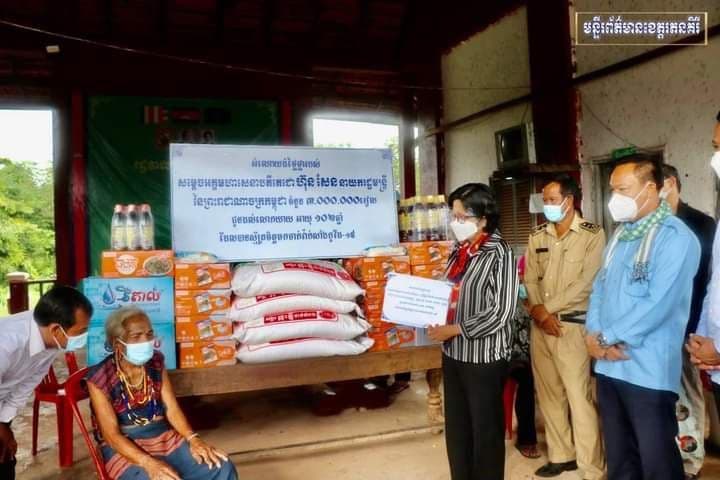 រតនគិរី៖ លោកជំទាវ ឱ វណ្ណឌីន រដ្ឋលេខាធិការក្រសួងសុខាភិបាល និងជាប្រធានគណៈកម្មការចំពោះកិច្ចចាក់វ៉ាក់សាំងកូវីដ-១៩ក្នុងក្របខណ្ឌទូទាំងប្រទេស និងឯកឧត្តម ថង សាវុន អភិបាលខេត្តរតនគិរី នៅព្រឹកថ្ងៃអាទិត្យ ទី០៨ ខែសីហា ឆ្នាំ២០២១ បាននាំយកអំណោយដ៏សប្បុរសរបស់សម្តេចតេជោ ហ៊ុនសែន នាយករដ្ឋមន្ដ្រីនៃព្រះរាជាណាចក្រកម្ពុជា ទៅប្រគល់ជូនលោកយាយ ណាយ វិត ជនជាតិដើមភាគតិចព្រៅ មានអាយុ ១០៦ឆ្នាំ រស់នៅភូមិប៉ាងគិត ឃុំតាវែងលើ ស្រុកតាវែង ខេត្តរតនគិរី ដែលបានស្ម័គ្រចិត្តចាក់វ៉ាក់សាំងការពារជំងឺកូវីដ-១៩។