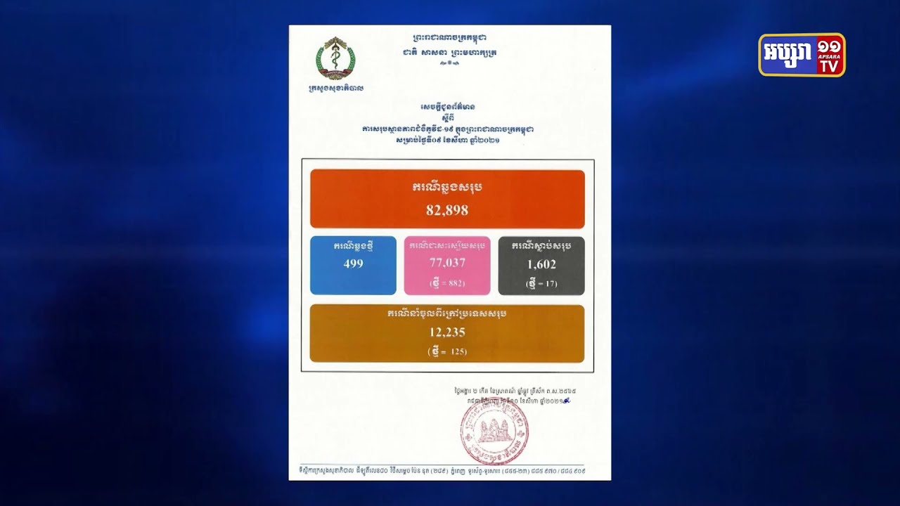 ក្រសួងសុខាភិបាលកម្ពុជា បន្តរកឃើញអ្នកឆ្លងជំងឺកូវីដ១៩ថ្មីៗ ចំនួន ៤៩៩នាក់ និងមានអ្នកស្លាប់ ១៧នាក់ (Video Inside)កម្មវិធីព័ត៌មានទូរទស្សន៍ព្រឹត្តិការណ៍ប្រចាំថ្ងៃអត្ថបទដោយ៖ឆាយ រត្ថាឆាយ រត្ថាលោក ឆាយ រត្ថា ជាបុគ្គលិកផ្នែកព័ត៌មានវិទ្យា នៃអគ្គនាយកដ្ឋានវិទ្យុ និងទូរទស្សន៍ អប្សរាអត្ថបទមុនអត្ថបទបន្ទាប់