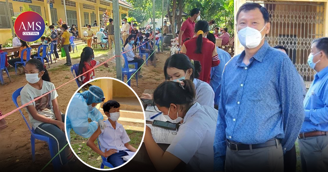 លោក នុត ពុធដារ៉ា ចុះពិនិត្យការចាក់វ៉ាក់សាំងដល់កុមារ និងក្មេងជំទង់ ក្នុងស្រុកខ្សាច់កណ្តាល