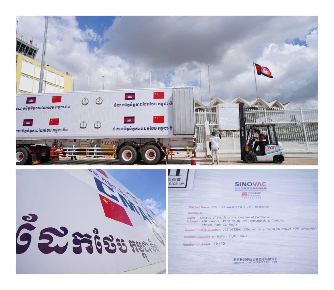 វ៉ាក់សាំងបង្ការជំងឺកូវីដ១៩ Sinovac ចំនួន ៣លានដូសបន្ថែមទៀត ដែលជាការបញ្ជាទិញរបស់រាជរដ្ឋាភិបាលកម្ពុជា បានមកដល់កម្ពុជា នៅព្រឹកថ្ងៃទី១២ សីហា ២០២១នេះ