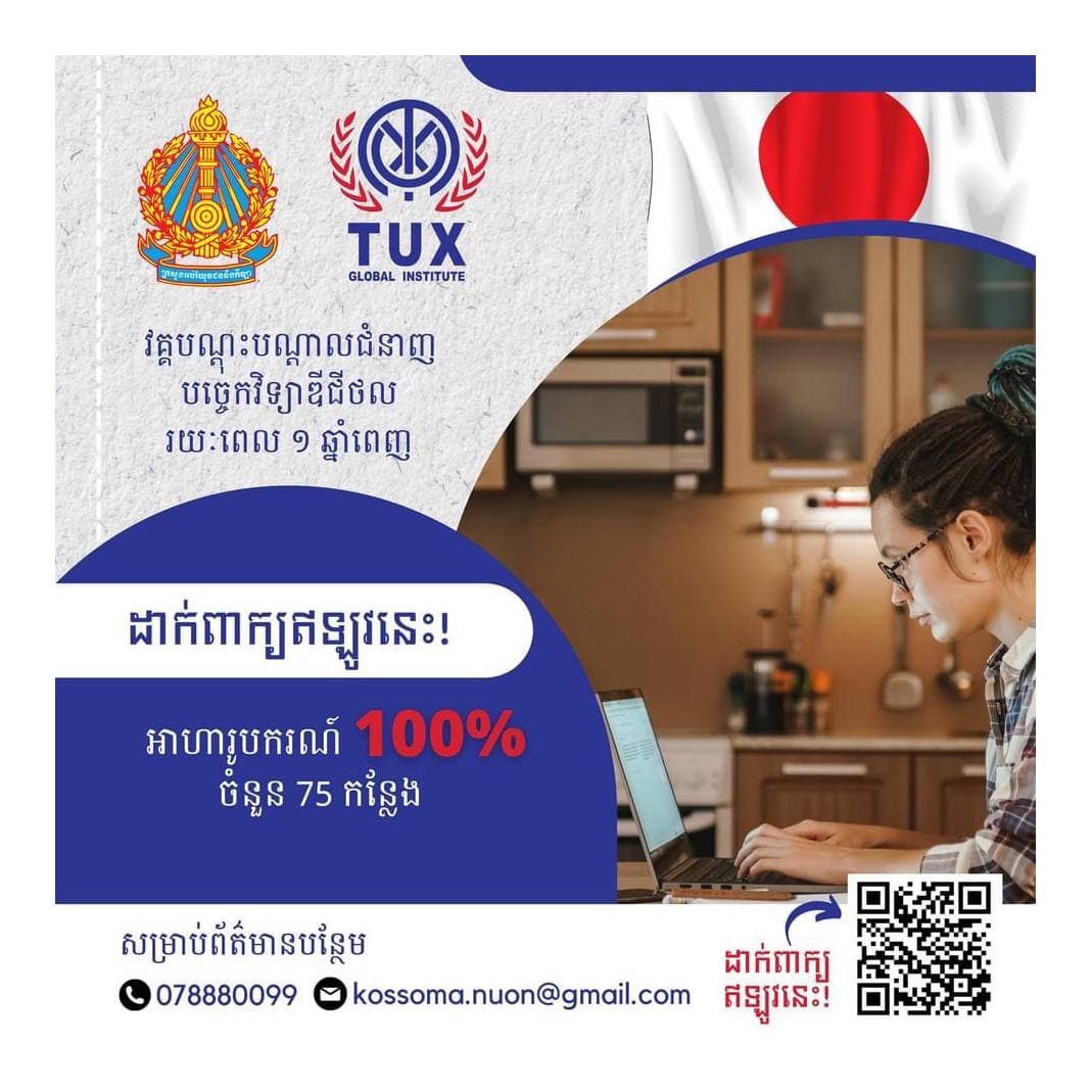 អាហារូបករណ៍ របស់ជប៉ុន 🇯🇵 ១០០% ចំនួន ៧៥កន្លែង សិក្សានៅវិទ្យាស្ថាន Tux Global Institute (TGI) លើជំនាញបច្ចេកវិទ្យាឌីជីថល