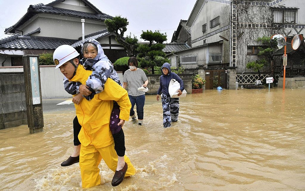 ប្រជាជនជប៉ុនរាប់សែននាក់ត្រូវបានស្នើអោយជម្លៀសខ្លួន ដើម្បីគេចចេញពីគ្រោះទឹកជំនន់ និងបំណាក់ដីបង្កឡើងដោយព្យុះភ្លៀងដ៏អាក្រក់