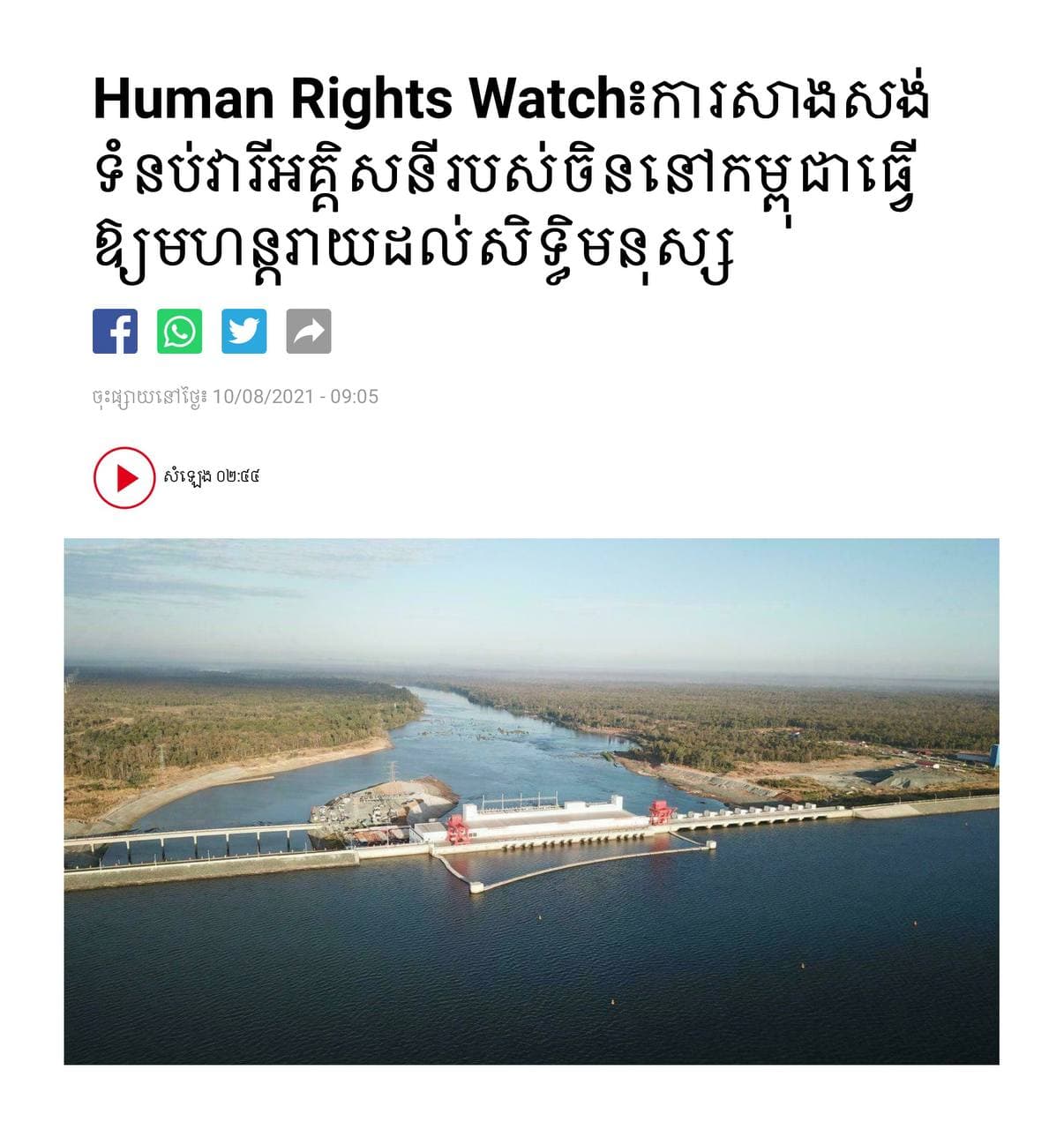 ប្រសិនបើអ្នកពិតជាចង់ជួយកម្ពុជាពិតមែន អ្នកគួរតែជួយគិត និងផ្តល់ការចូលរួមជាវិជ្ជមានលើការសាងសង់ទំនប់វារីអគ្គីសនី ដើម្បីបំពេញតម្រូវការផ្គត់ផ្គង់នៅក្នុងប្រទេស និងបន្ថយការចំណាយថវិកាទិញអគ្គិសនីពីបរទេស។ សូមអង្គការទាំងឡាយឈប់យករឿងសិទ្ធិមនុស្សជាលេសដើម្បីលូកដៃចូលការសម្រេចលើជោគវាសនារបស់កម្ពុជាទៀតទៅ។