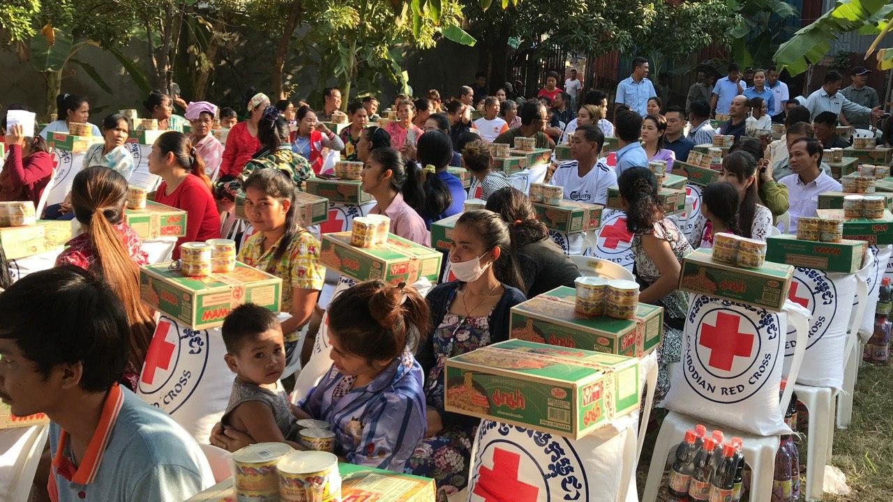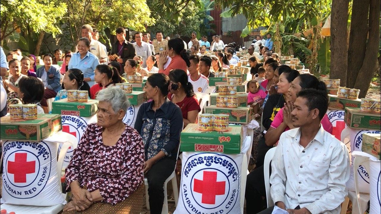 អនុសាខាកាកបាទក្រហមខណ្ឌចំការមន នាំយកអំណោយចែកជូនប្រជាពលរដ្ឋនៅក្នុងសង្កាត់ផ្សារដើមថ្កូវ ចំនួន៩៩គ្រួសារ