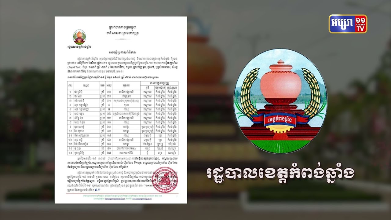 ខេត្តកំពង់ឆ្នាំង ឆ្លងថ្មី១៥នាក់ (Video Inside)