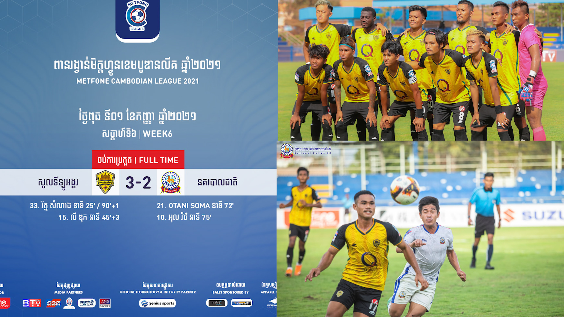 ក្រុមសូលទីឡូអង្គរ រកបាន៣ពិន្ទុជាលើកដំបូងពីក្រុមនគរបាលជាតិ ក្នុងលទ្ធផល ៣ទល់២ ល្ងាចម្សិលមិញ សប្តាហ៍ទី៦ នៃលីគកំពូលកម្ពុជា រដូវកាល ២០២១ ។