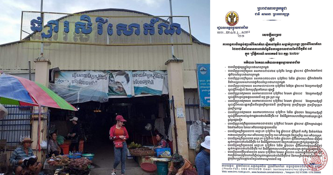 រដ្ឋបាលខេត្តបន្ទាយមានជ័យ បានសម្រេច បន្តការបិទខ្ទប់ផ្សារសិរីសោភ័ណ ស្ថិតនៅភូមិ៣ សង្កាត់ព្រះពន្លា ក្រុងសិរីសោភ័ណ ដែលជាទីតាំងមានការ
