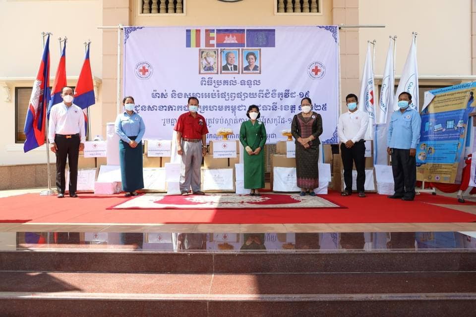 ភ្នំពេញ ៖ កាកបាទក្រហមកម្ពុជា ដែលមាន ហ្លួងម៉ែ នរោត្តម មុនិនាថ សីហនុ ជាព្រះប្រធានកិត្តិយស និងសម្តេចកិត្តិព្រឹទ្ធបណ្ឌិត ប៊ុន រ៉ានី ហ៊ុនសែន ជាប្រធាន នៅថ្ងៃទី ២ ខែកញ្ញា ឆ្នាំ២០២១ បានប្រគល់ម៉ាស់ រួមជាមួយសម្ភារៈអប់រំផ្សព្វផ្សាយ ស្តីពីជំងឺកូវីដ-១៩ ពីវិជ្ជាសង្គ្រោះបឋម និងពីការត្រៀមបង្ការគ្រោះមហន្តរាយ ជូនសាខាកាកបាទក្រហមកម្ពុជា រាជធានី-ខេត្ត ទាំង២៥ ដើម្បីចូលរួមចំណែកជាមួយរាជរដ្ឋាភិបាលក្នុងការរួមគ្នាទទួលខុសត្រូវទប់ស្កាត់ការចម្លងវីរុសកូវីដ-១៩។