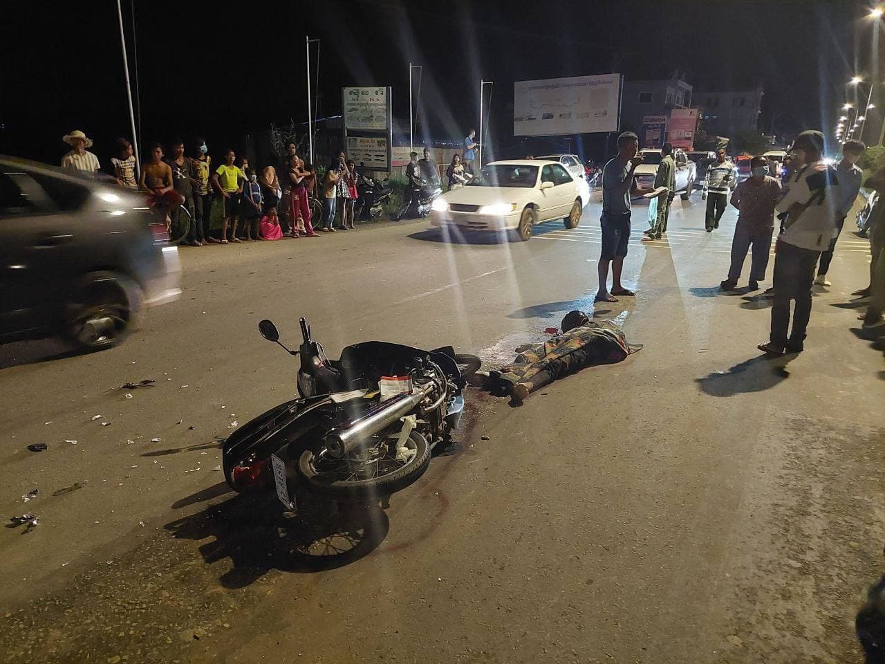 បុរសម្នាក់ជិះម៉ូតូលឿនពេក ចាប់ហ្រ្វាំងមិនទាន់ ជ្រុលទៅបុកគូទរថយន្តពីក្រោយ ពេញទំហឹង បណ្ដាលឲ្យបោកក្បាល ស្លាប់ភ្លាមៗ