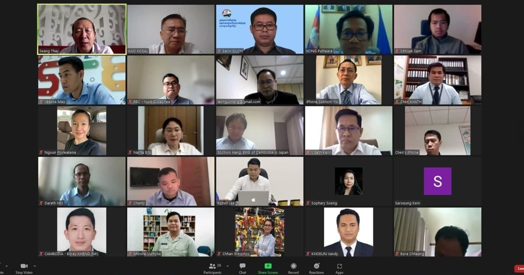 ភ្នំពេញ៖ នាថ្ងៃពុធ ៩កើត ខែភទ្របទ ឆ្នាំឆ្លូវ ត្រីស័ក ព.ស. ២៥៦៥ ត្រូវនឹងថ្ងៃទី១៥ ខែកញ្ញា ឆ្នាំ២០២១ ឯកឧត្តម ស៊ាង ថៃ រដ្ឋលេខាធិការ និងជាអ្នកនាំពាក្យក្រសួងពាណិជ្ជកម្ម បានដឹកនាំកិច្ចប្រជុំស្តីពី វឌ្ឍនភាពការងារ របស់ស្ថានតំណាងពាណិជ្ជកម្ម ប្រចាំនៅបរទេស តាមរយៈប្រព័ន្ធវីដេអូ Zoom ដែលមានការចូលរួមពី ឯកឧត្តមអគ្គនាយក លោកអគ្គនាយករង ជំរុញពាណិជ្ជកម្ម ឯកឧត្តម លោក-លោកស្រី ទីប្រឹក្សា-អនុព័ន្ធពាណិជ្ជកម្ម អមស្ថានឯកអគ្គរាជទូតកម្ពុជា ប្រចាំនៅក្រៅប្រទេស ព្រមទាំងថ្នាក់ដឹកនាំ និងមន្រ្តីជំនាញ នៃនាយកដ្ឋានអភិវឌ្ឍន៍ទីផ្សារ ។