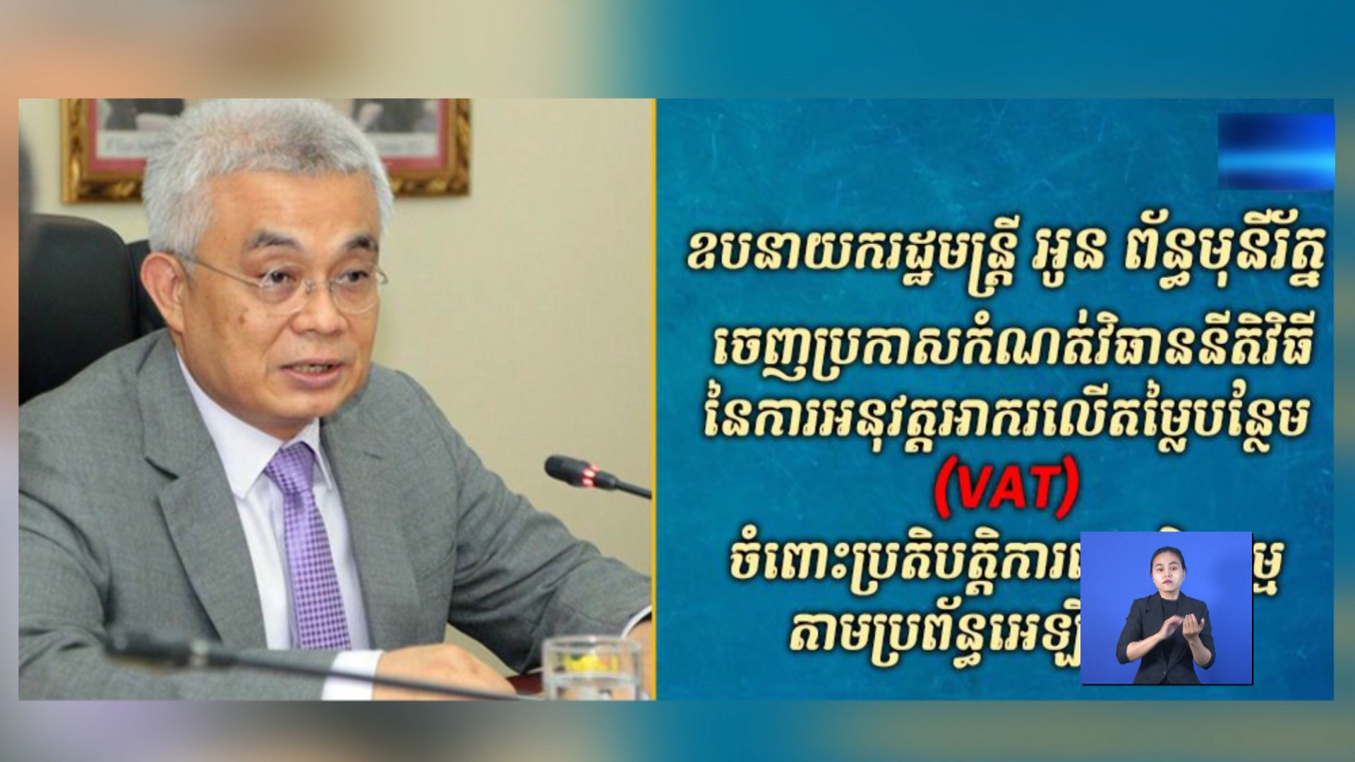 ឯកឧត្តមឧបនាយករដ្ឋមន្ត្រី អូន ព័ន្ធមុនីរ័ត្ន កំណត់វិធាននីតិវិធីនៃការអនុវត្ដអាករលើតម្លៃបន្ថែម(VAT)