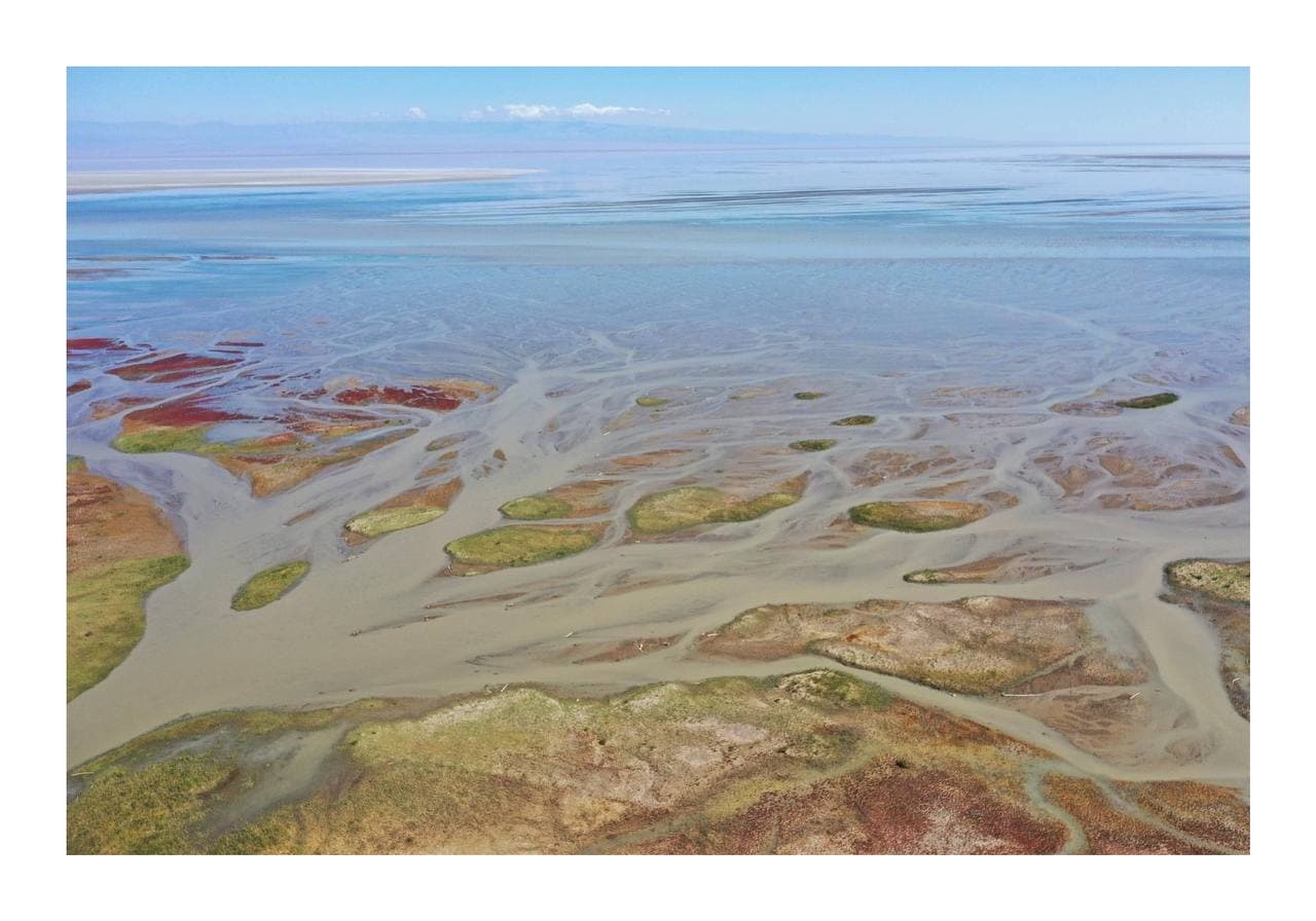 នៅឯមាត់បឹង មានទឹកហូរពីទន្លេ Jinghe ចូលមកវិញ។ ការណ៍នេះបានបន្សល់ទុកនូវស្នាមដានដែលមានសណ្ឋានដូចឬសដើមឈើយក្ស។ ស្មៅក្រហម និងស្មៅសមុទ្រពណ៌បៃតងបានធ្វើឱ្យតំបន់ដីសើមនេះហាក់ដូចជាឋានសួគ៌ចម្រុះពណ៌មួយរបស់សត្វព្រៃ។