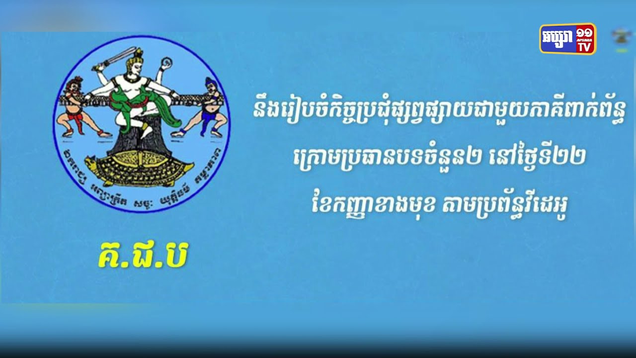 គណៈកម្មាធិការជាតិរៀបចំការបោះឆ្នោត (គ.ជ.ប) នឹងរៀបចំកិច្ចប្រជុំផ្សព្វផ្សាយជាមួយភាគីពាក់ព័ន្ធ ក្រោមប្រធានបទចំនួន២ នៅថ្ងៃទី២២ ខែកញ្ញាខាងមុខ តាមប្រព័ន្ធវីដេអូ (Video Inside)កម្មវិធីព័ត៌មានទូរទស្សន៍ព្រឹត្តិការណ៍ប្រចាំថ្ងៃអត្ថបទដោយ៖ឆាយ រត្ថាឆាយ រត្ថាលោក ឆាយ រត្ថា ជាបុគ្គលិកផ្នែកព័ត៌មានវិទ្យា នៃអគ្គនាយកដ្ឋានវិទ្យុ និងទូរទស្សន៍ អប្សរាអត្ថបទមុនអត្ថបទបន្ទាប់