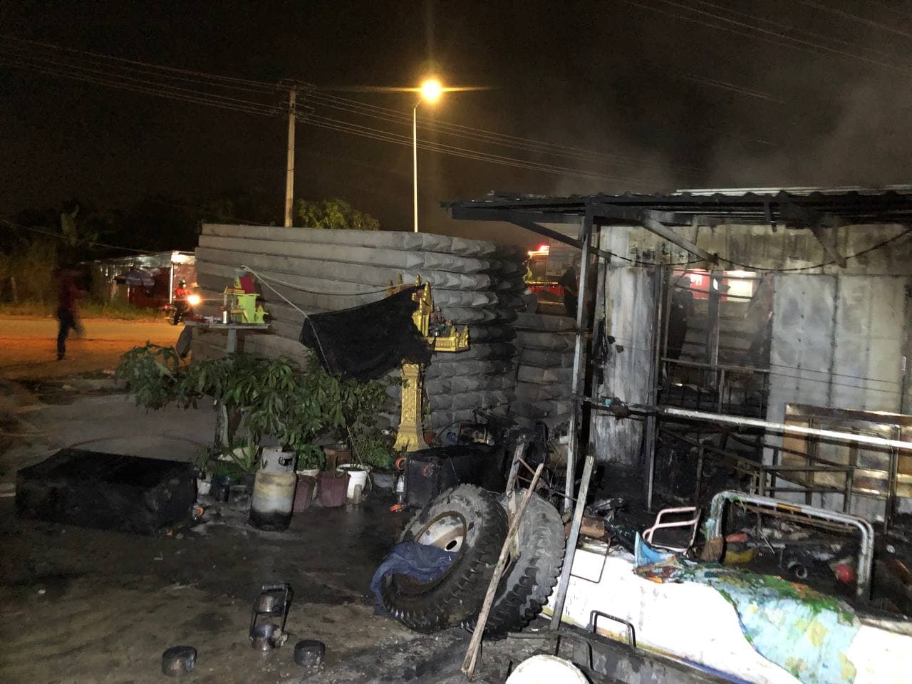 ផ្ទះឆ្នៃពីទូកុងតឺន័រដ៏ធំមួយកន្លែងជាប់ផ្លូវថៃហ្គរ ត្រូវអគ្គីភ័យឆាបឆេះទាំងស្រុង